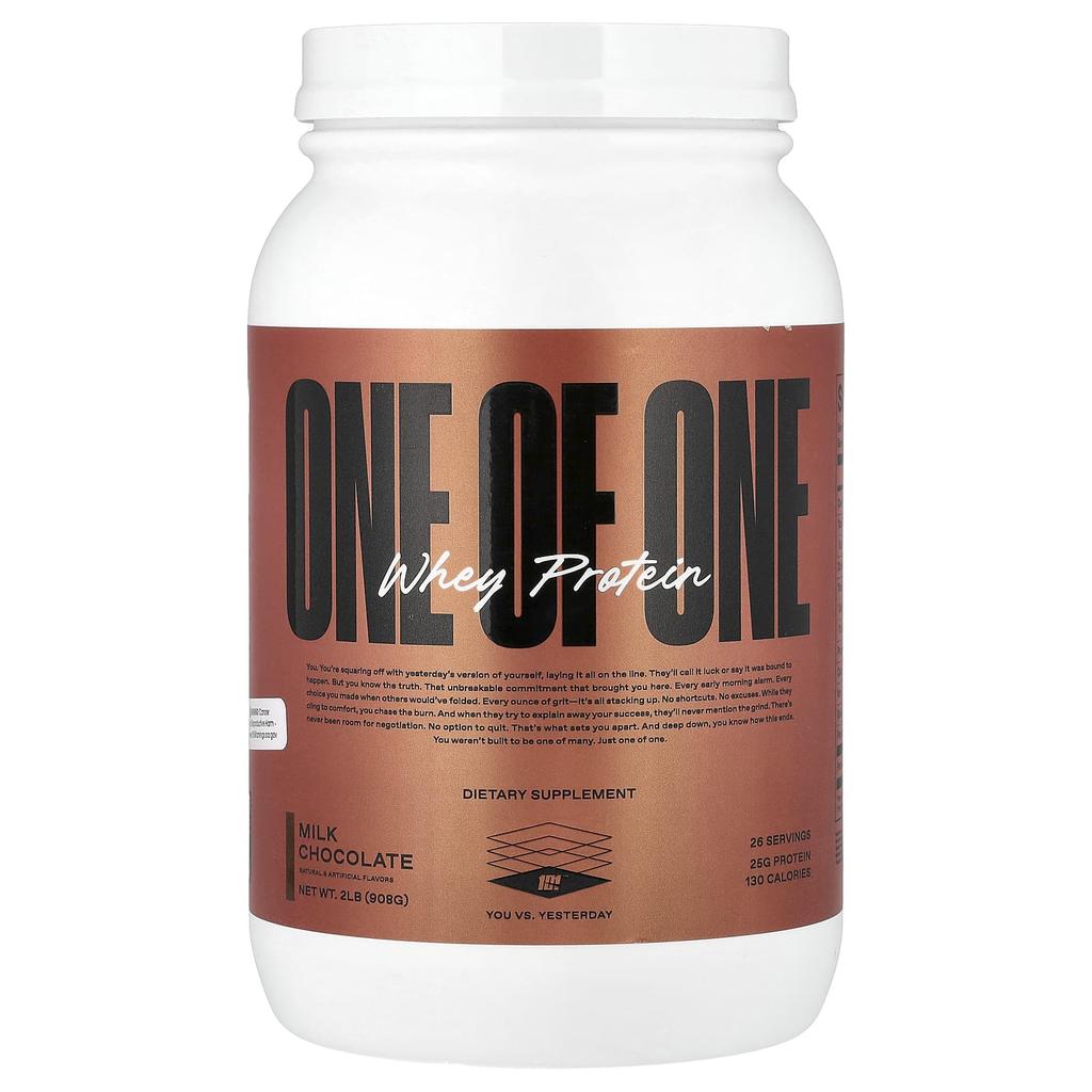 Product Description: Supplement, Natural and Artificial Flavors, 25g Protein, 130 Calories, Good Manufacturing Practices (GMP), Supports Recovery, Muscle Building, Protein Source, Gluten Free, Dyes Free, Low Sugar, Pure Whey Protein, Prebiotic Fiber. It's you. You're giving up everything, reclaiming your past. People call it luck or saying it will happen. You know the truth: the unchangeable promise that got you here. It rings every morning. Every choice others made. It all adds up. No shortcuts. No excuses. You seek comfort in a form of attachment. When you describe your success, you don't mention hardship. There's no compromise. You can't quit. That's what sets you apart. Deep down, you know how it all ends. You weren't made to be one of many. One of them. ONE OF ONE Whey Protein contains 25g of high-quality, customized protein to promote lean muscle growth and recovery. Formulated with prebiotic fiber and digestive enzymes, each gram is effectively digested and maximally absorbed. This isn't just protein; it's the foundation for reaching new heights.