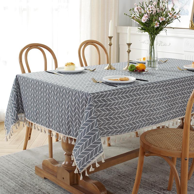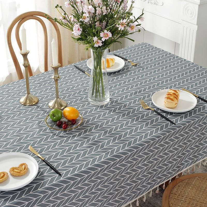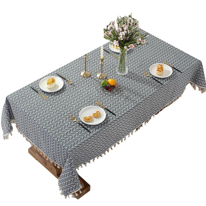 Cloth Dad Washed Cotton And Linen Canvas Printed Fish Bone Pattern Rectangular Tablecloth Fringed Tablecloth Dining Table Cloth Coffee Table Cloth