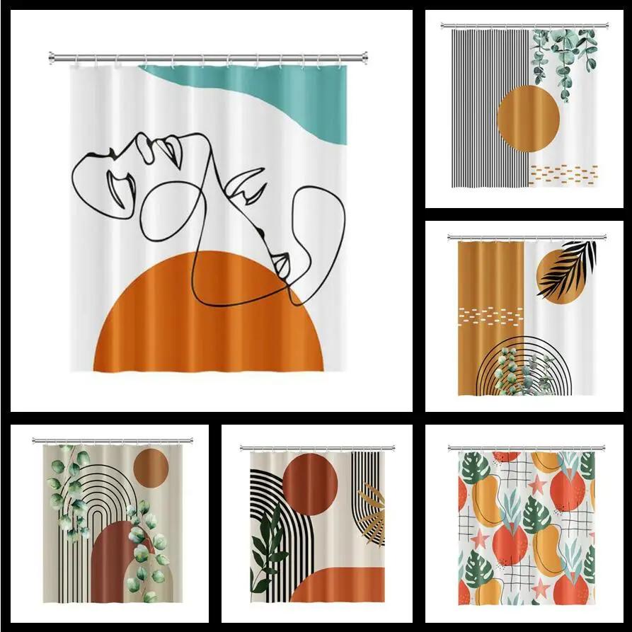 Nordic Wind Abstract Art Boho Shower Curtain Waterproof Polyester Bath Curtain Morandi Color Block Curtains For Bathroom Decor