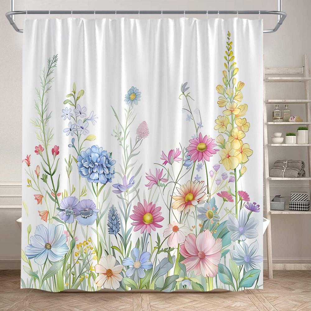 Цветочные шторки для душа Акварельные цветы Бабочка Растение Современная Минималистичная Занавеска для ванной Полиэстеровая ткань Домашнее украшение