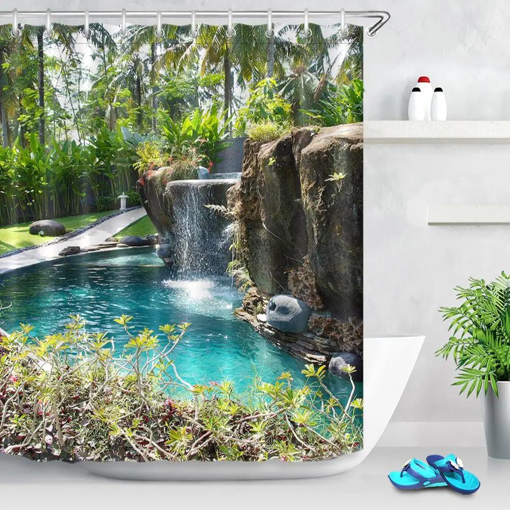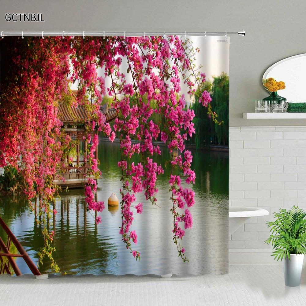 Парк Сад Дерево Цветок Пруд Природа Пейзаж Занавеска для душа Ванная Полиэстер Водонепроницаемая ткань Шторы Дом Ванна Декор