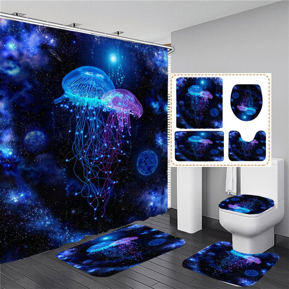 Мечта Звездное Небо Океан Медуза Ванная Водонепроницаемый Набор Штор для Душа с 12 Крючками Коврик для Ванной Нескользящий Коврики Чехол для Сиденья Унитаза