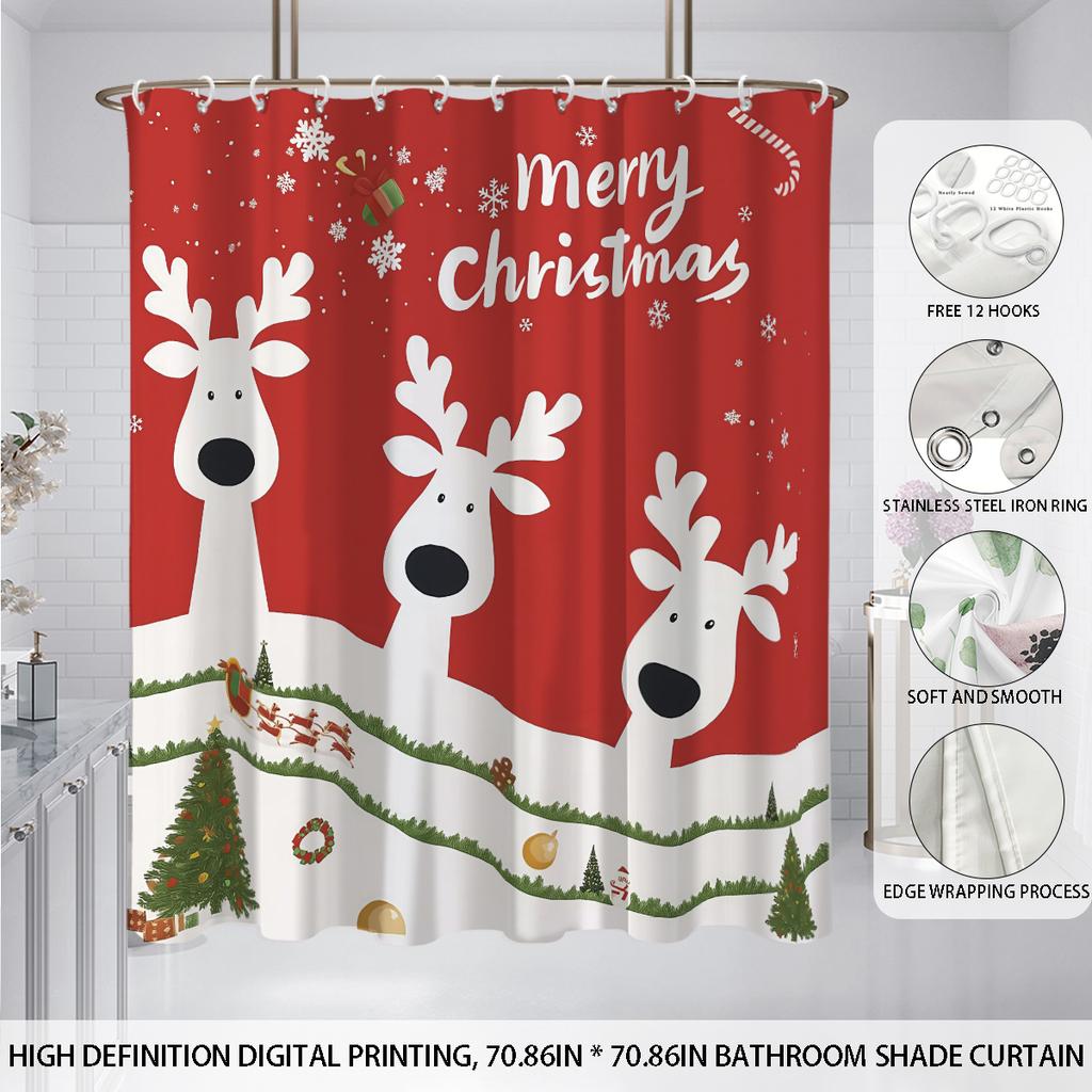 1 шт. Рождественская перфорированная водонепроницаемая занавеска для душа с принтом оленя, приватная, разных размеров, подвесная занавеска, 12 крючков, простая установка