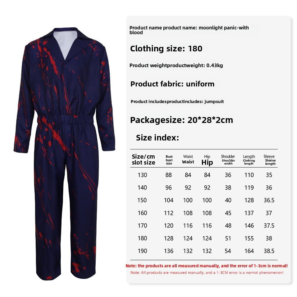 Костюм «Хэллоуинский лунный свет» изготовлен из полиэстеровой ткани, предназначенной для сценических и театральных выступлений.. и доступны в нескольких размерах. Его поразительный дизайн включает варианты с кровью и без крови с головным убором, поддерживая креативное выражение костюма.. Идеально для театральных мероприятий, сценических выступлений и тематических вечеринок, он прост в уходе — просто протрите влажной тканью.