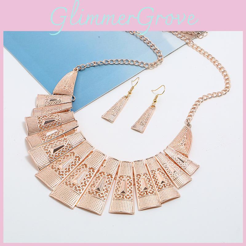 Этот ювелирный набор в винтажном стиле имеет геометрический дизайн из сплава с полыми акцентами, включая ожерелье и подходящие серьги.. и доступны в цветах белого золота, золота, розового золота и античного серебра. Идеально для добавления отличительной изюминки к повседневному или формальному наряду. Для поддержания внешнего вида протирайте мягкой тканью.