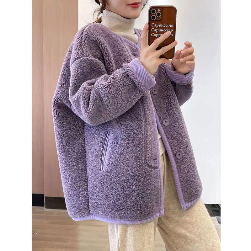 Женское пальто из овчины цвета таро - Корейский стиль, Свободный крой, Утепленный зимний верх — купить товар онлайн с бесплатной доставкой до всему миру!