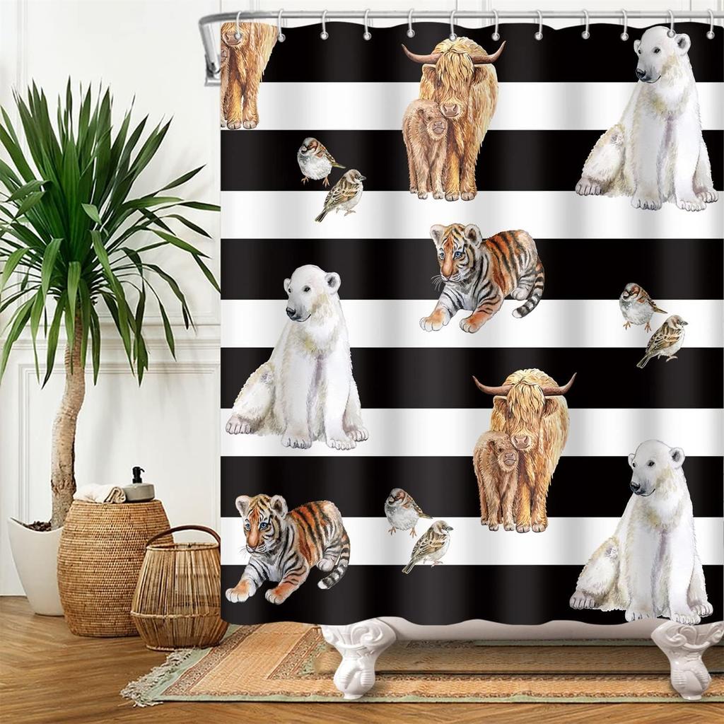 Милая шторка для душа с абстрактным рисунком животного, мультяшная забавная шторка для душа на тему домашних питомцев, украшение для детской ванной комнаты с крючком