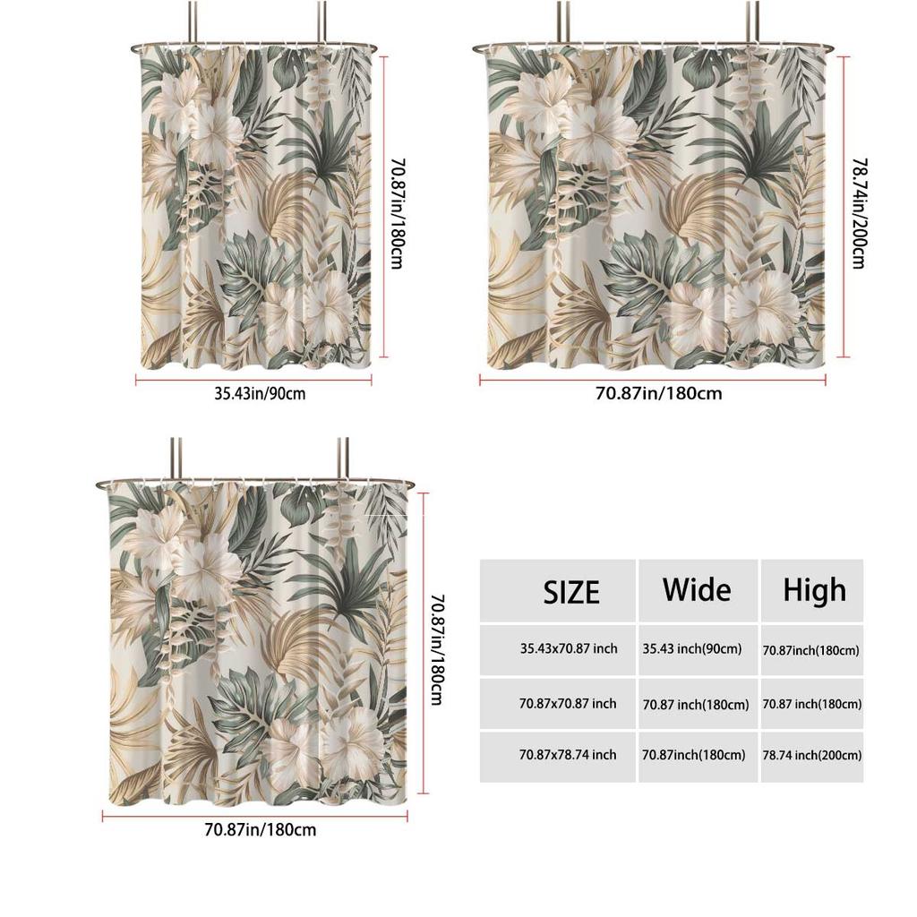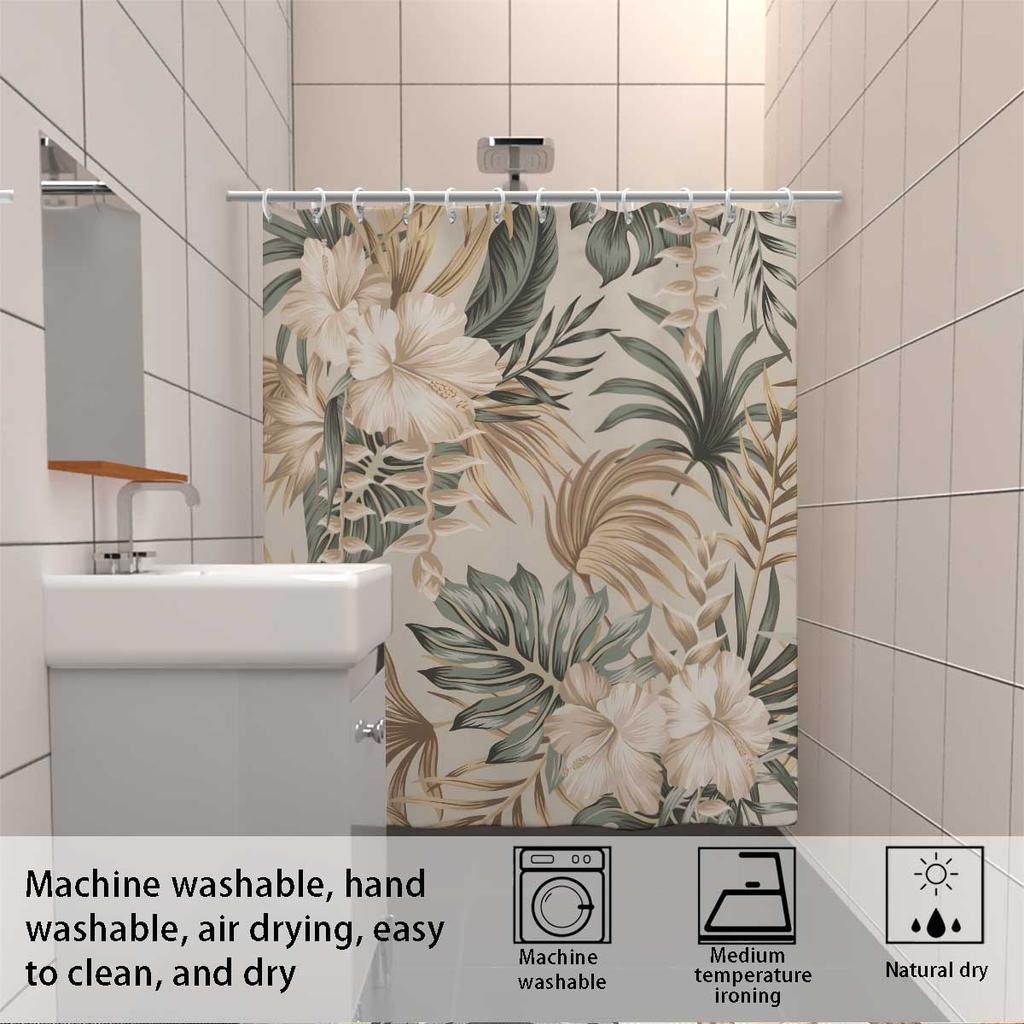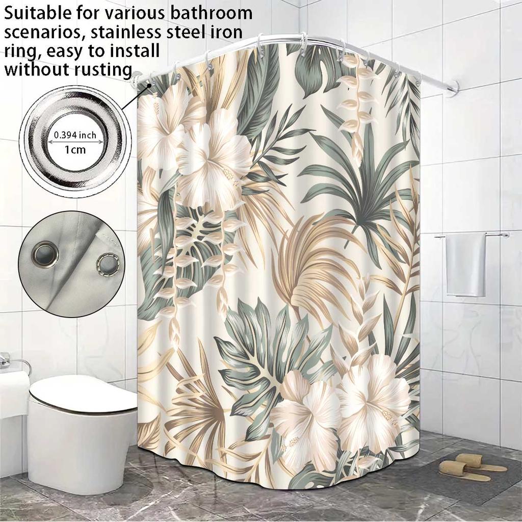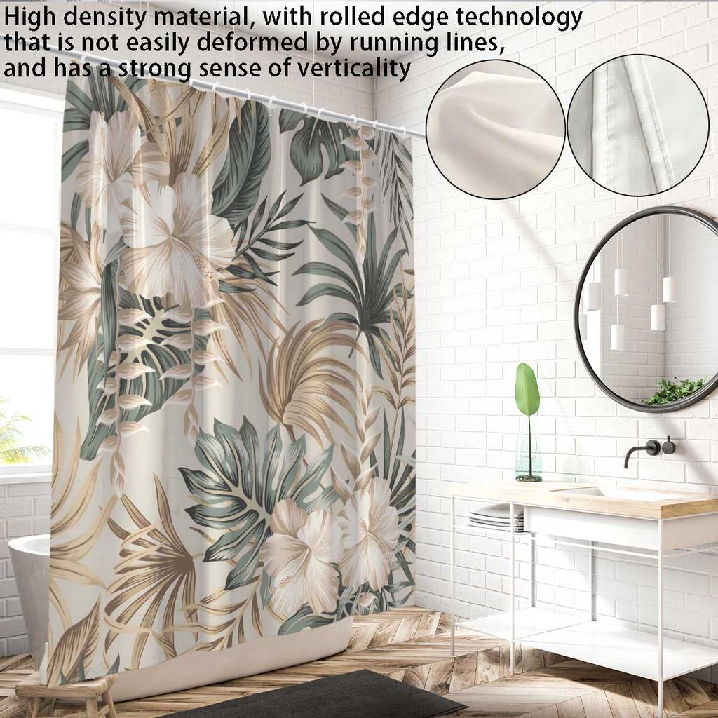 1 шт. занавеска для душа с цветочным принтом Monstera Deliciosa, с 12 крючками, машинная стирка, для душевой перегородки и защиты конфиденциальности