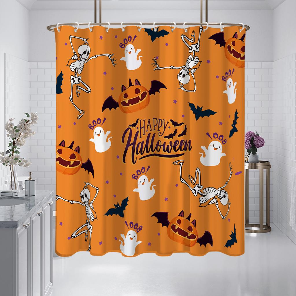1 Piece Of 180X180Cm Halloween Orange Skull Printed Shower Curtain Partition, Bathroom Waterproof And Mildew Proof
