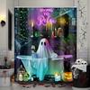 Смешная готическая шторка для душа с черепом Хэллоуин Жуткий череп Скелет в ванной Зеленое растение Страшный Креативный Тканевый Декор для ванной