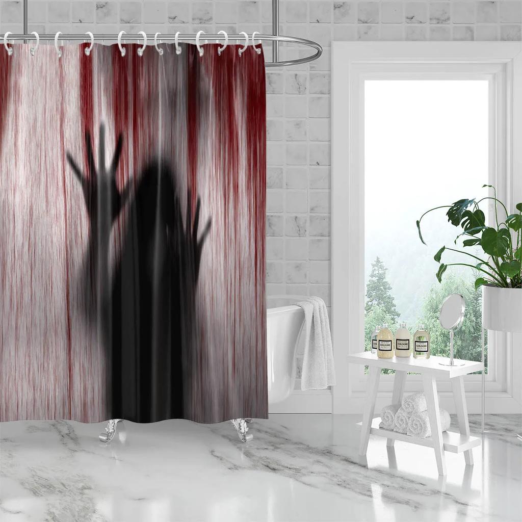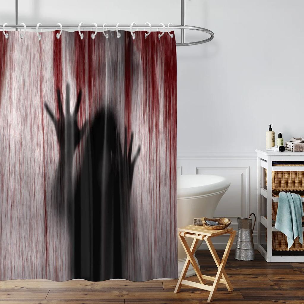 Хэллоуинская шторка для душа Жуткий женский призрак крови, Теневой окровавленный отпечаток руки Дом с привидениями Шторка для душа для декора ванной комнаты