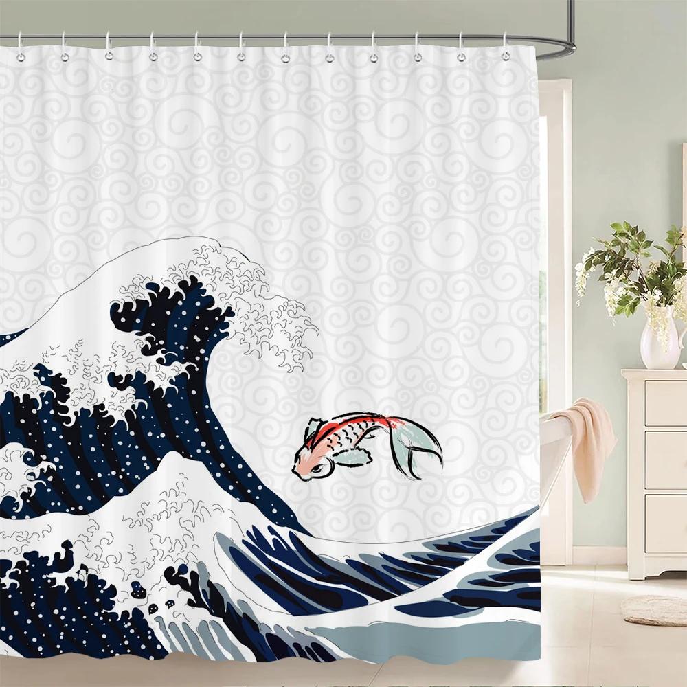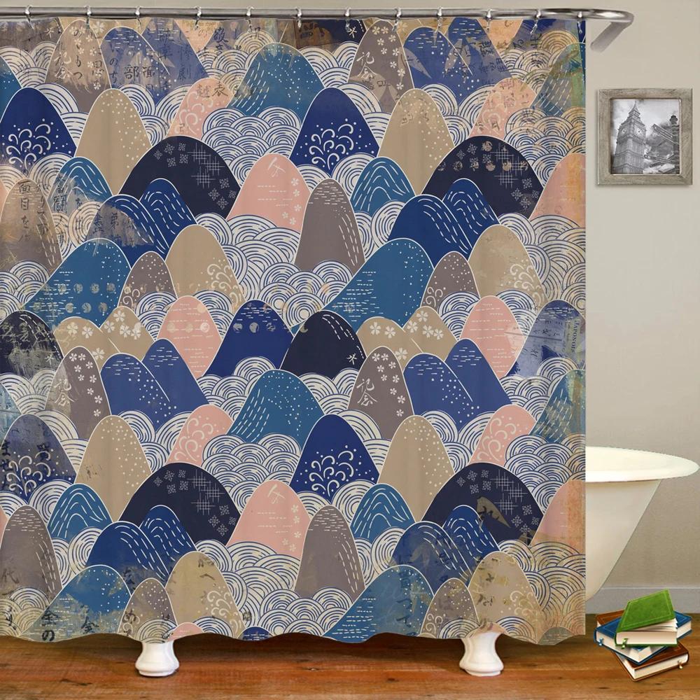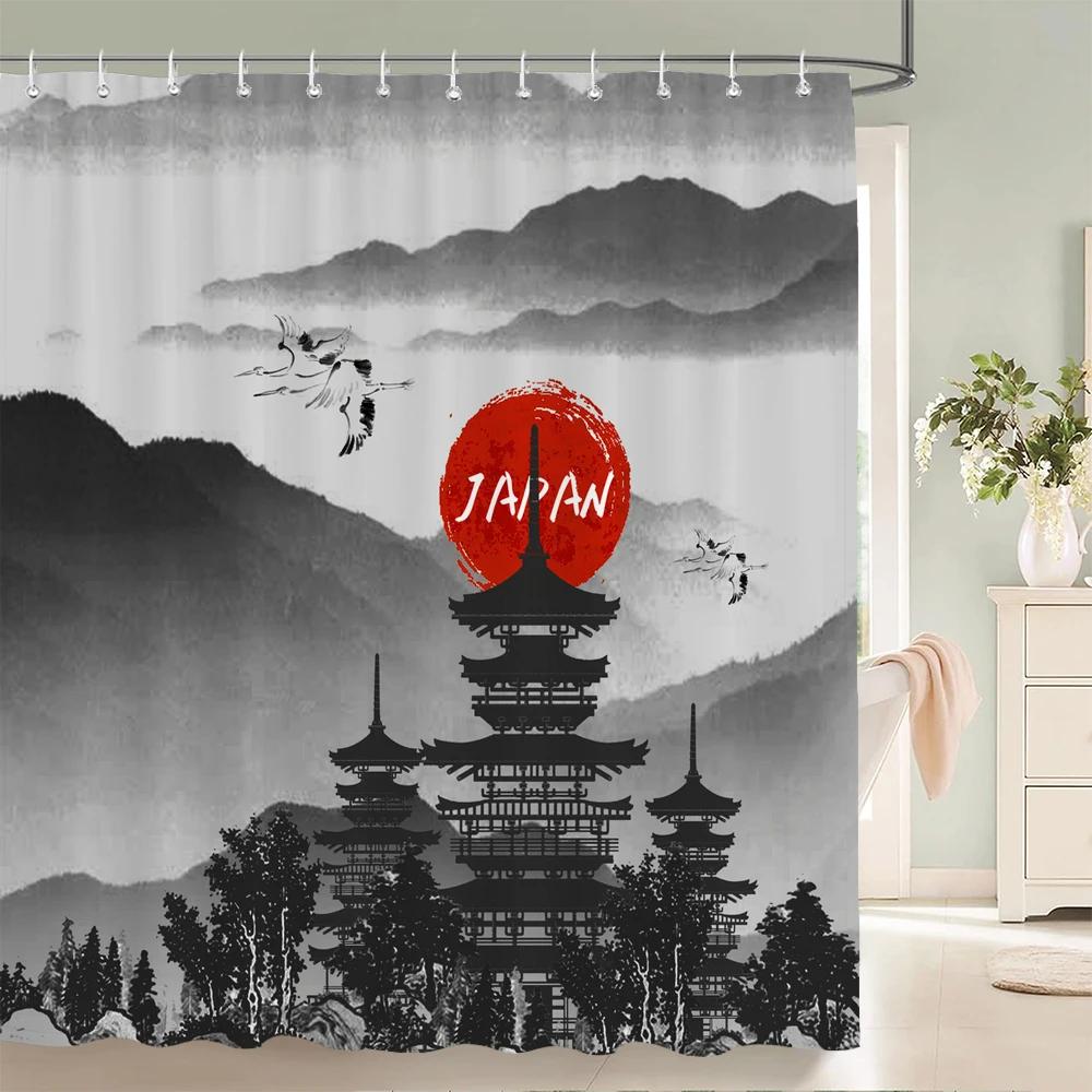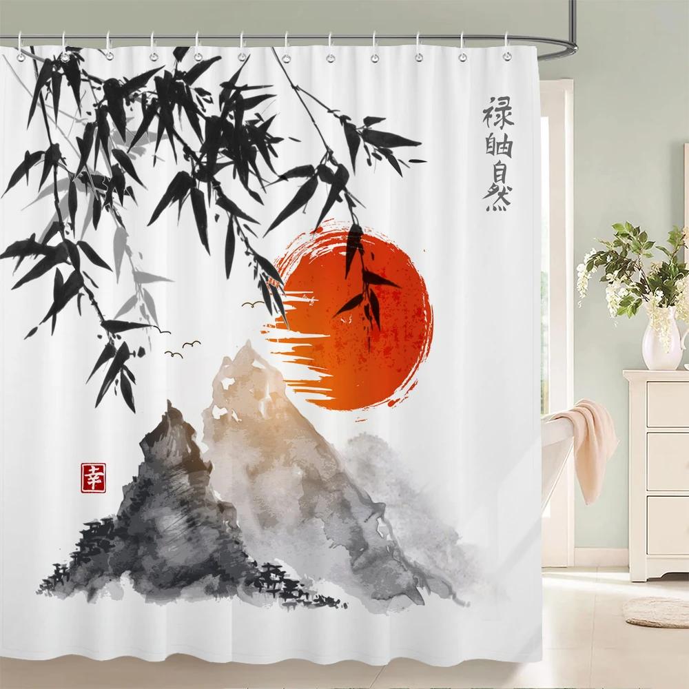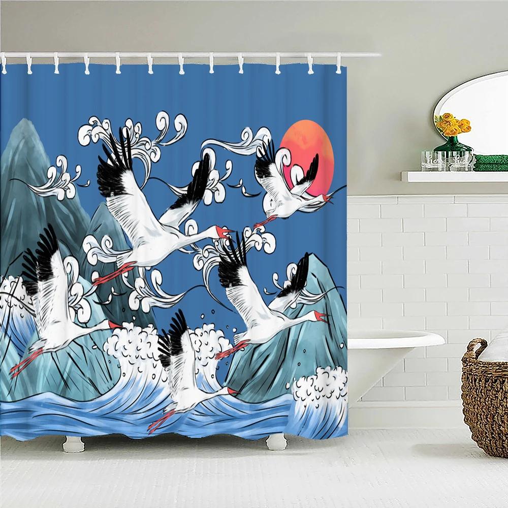 Занавеска для душа в японском стиле 3D Рисунок тушью Занавеска для ванной Водонепроницаемая С крючками 180*240 см Занавеска для душа Полиэстеровая ткань