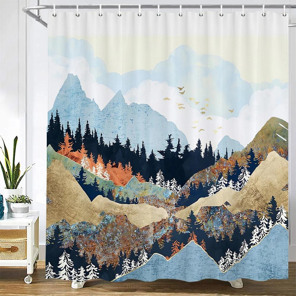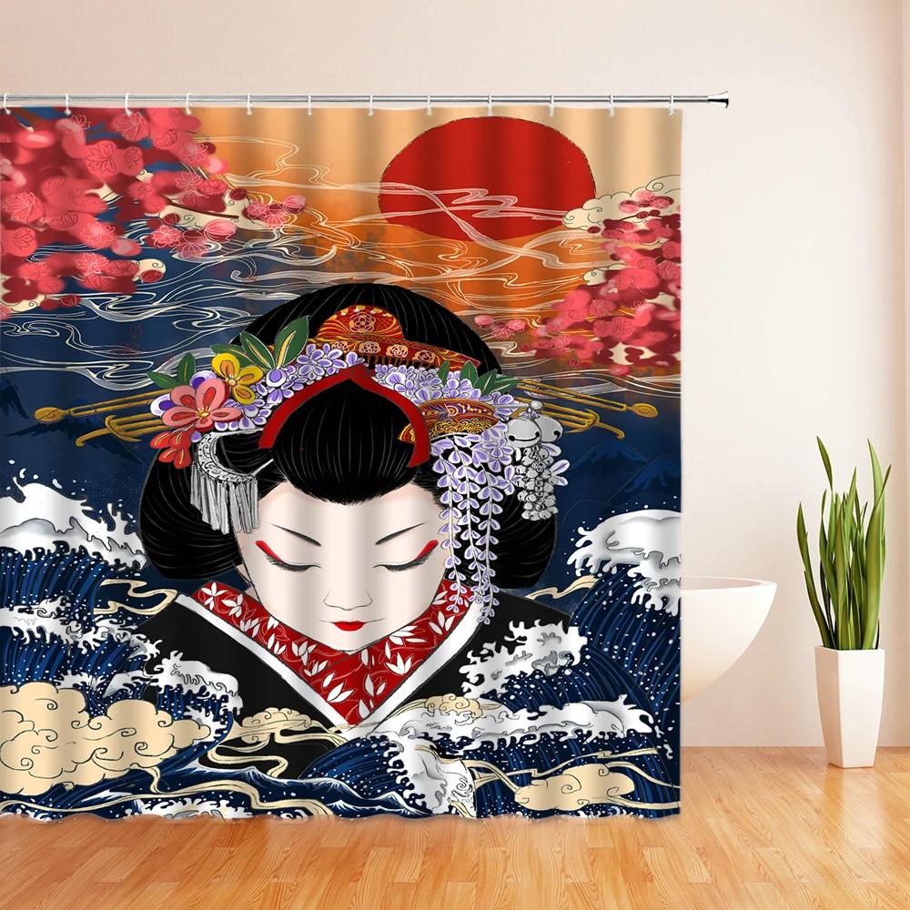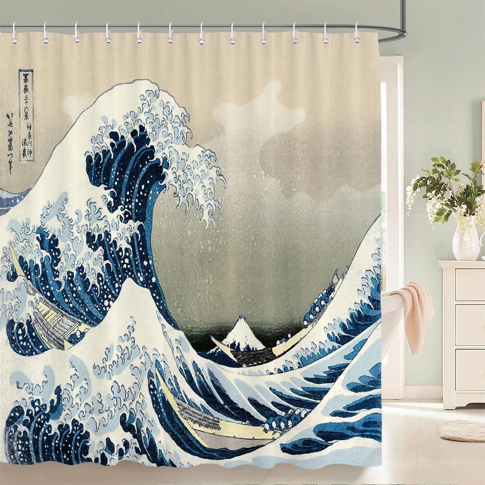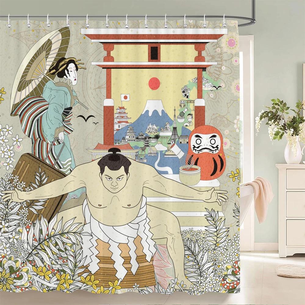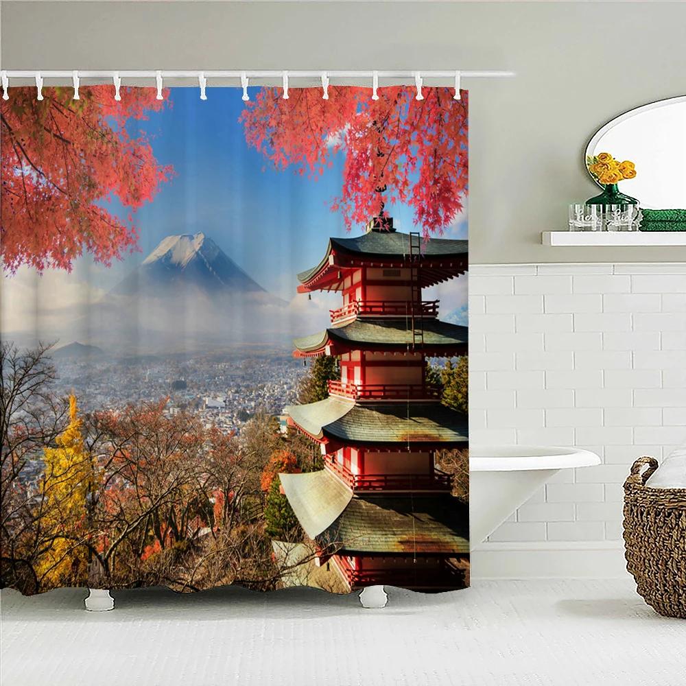 Занавеска для душа в японском стиле 3D Рисунок тушью Занавеска для ванной Водонепроницаемая С крючками 180*240 см Занавеска для душа Полиэстеровая ткань