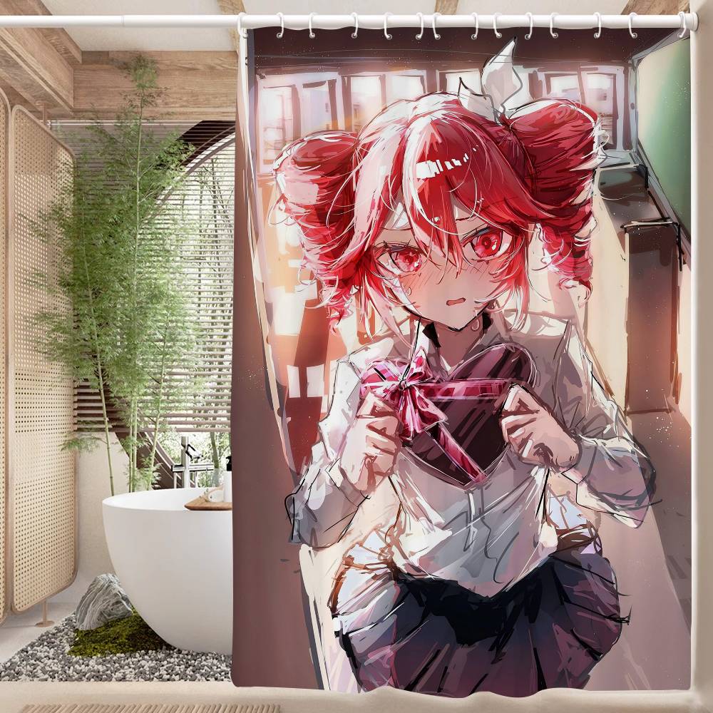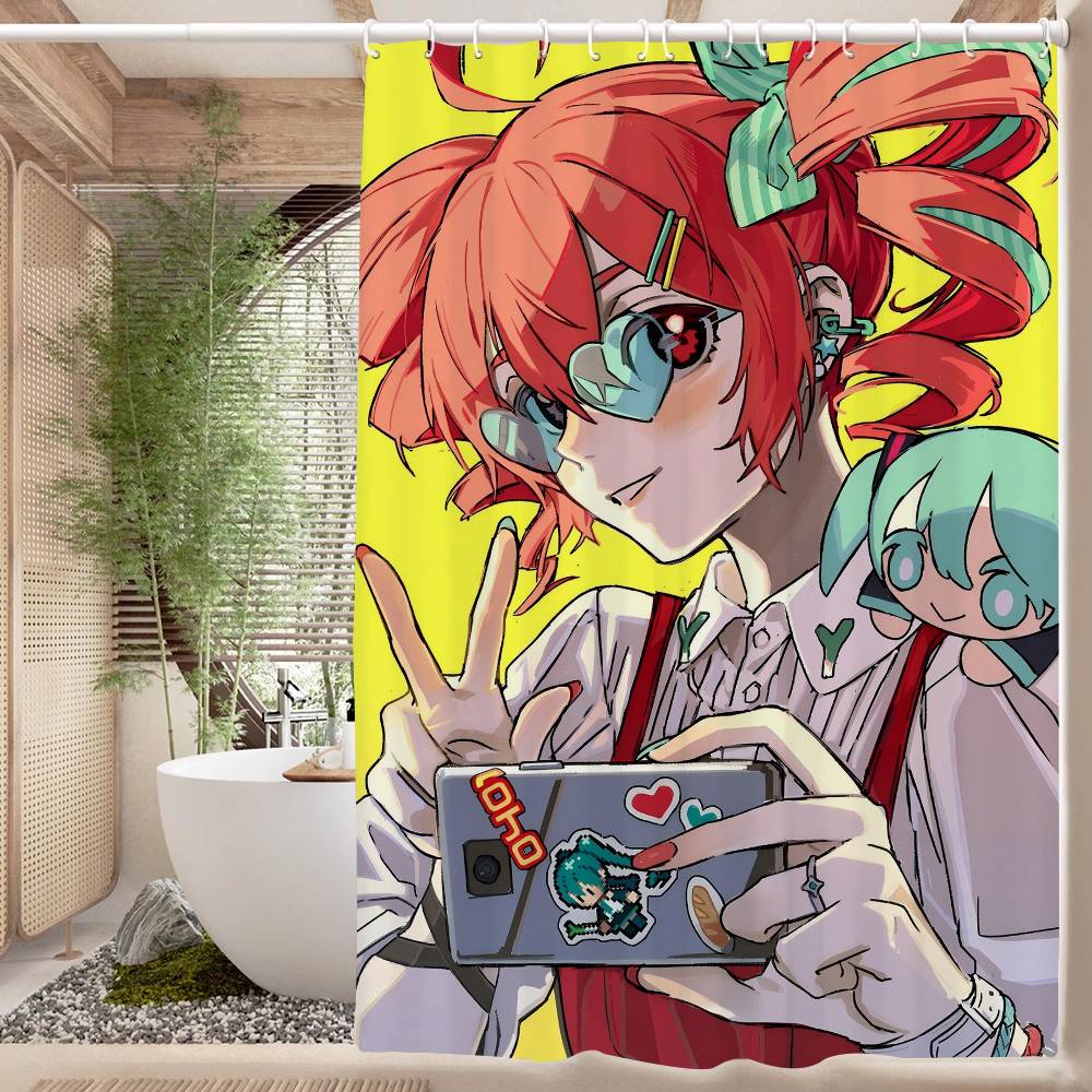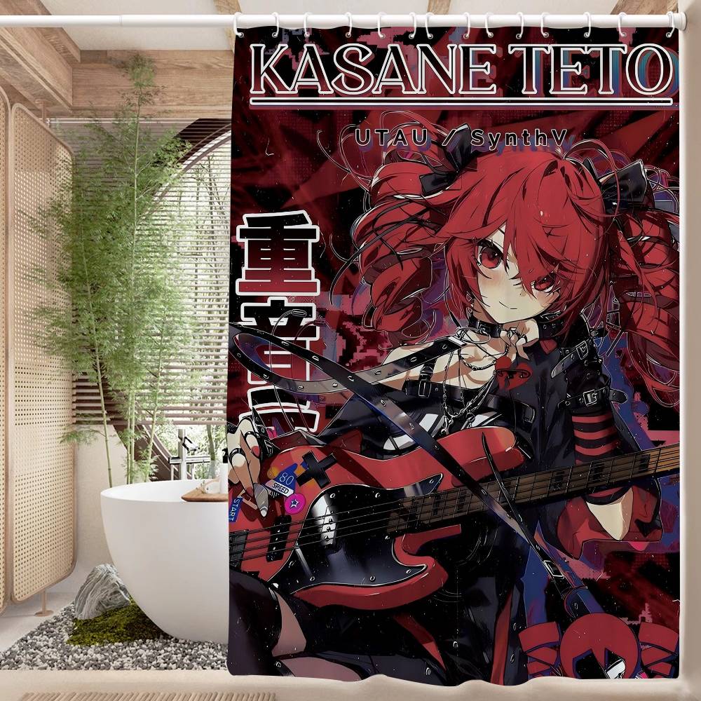 Популярный виртуальный певец Касанэ Тэто Аниме Занавеска для душа Летний пляж Ванная комната Декоративная занавеска для душа, Водонепроницаемая