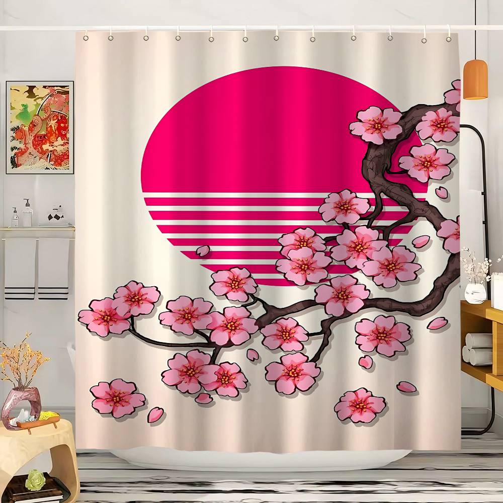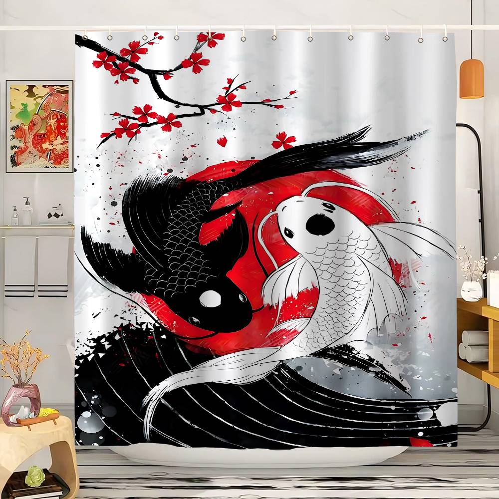 Japanese Style Koi Cherry Blossom Pattern Bathroom Shower Curtain Bathroom Partition Curtain Light Opaque Waterproof