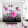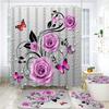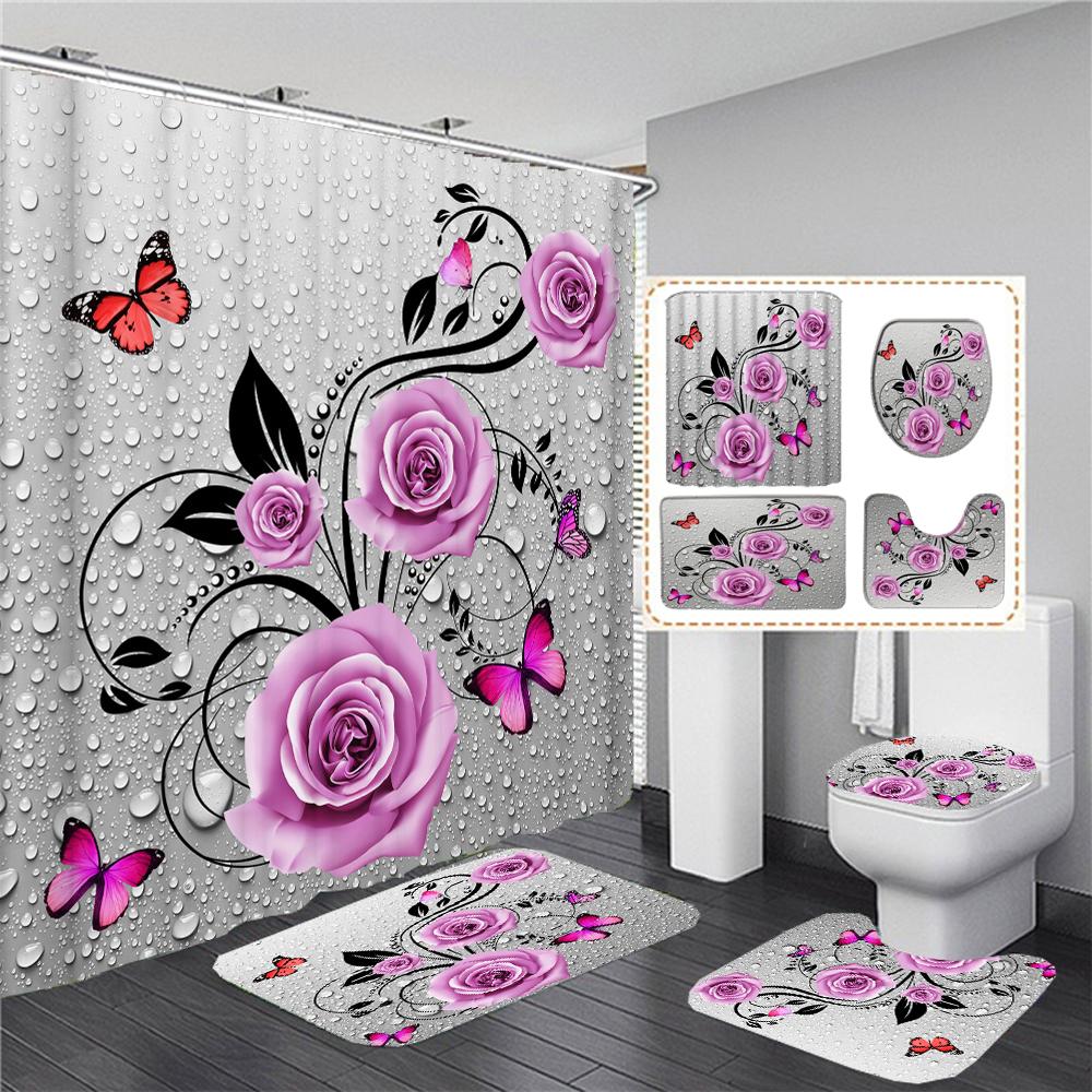 3D Бабочка Цветок Ткань Водонепроницаемая Шторка для душа Шторы для ванной комнаты Набор Синий Розовый Роза Нескользящий коврик Чехол на крышку унитаза Коврик для ванной