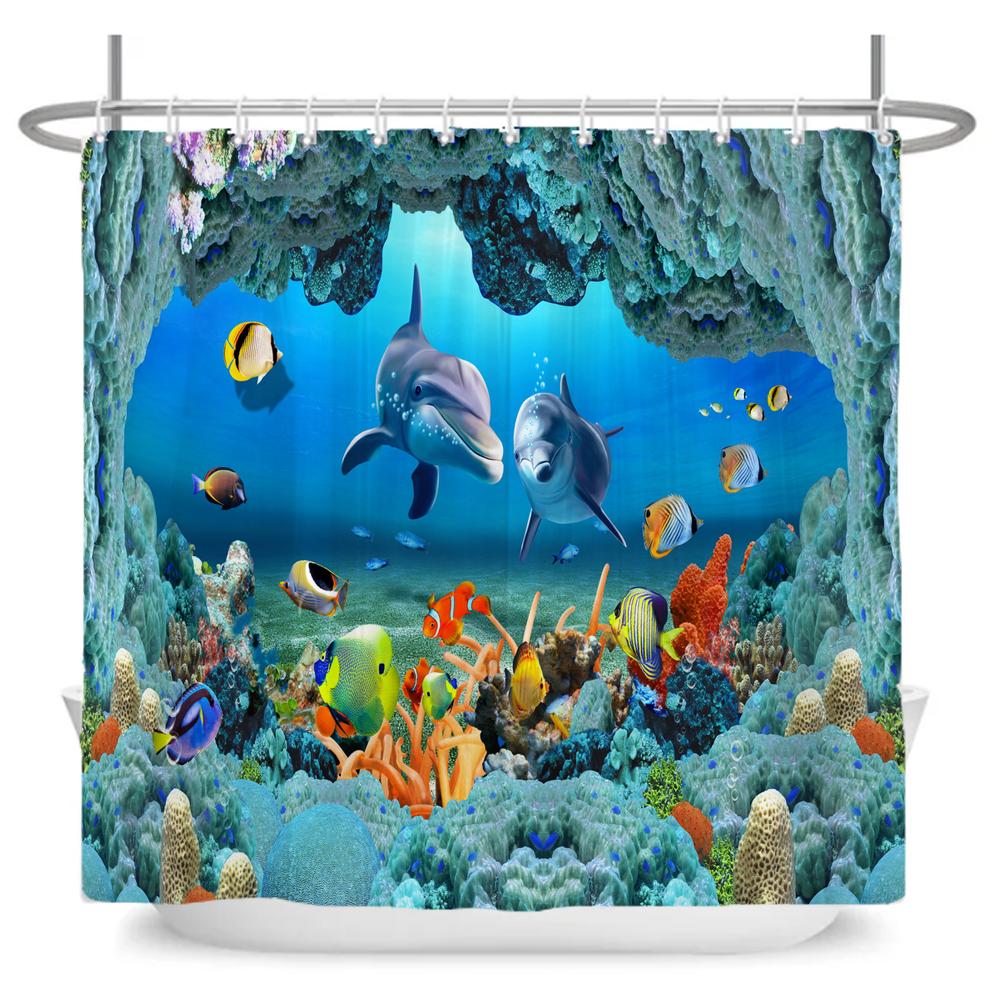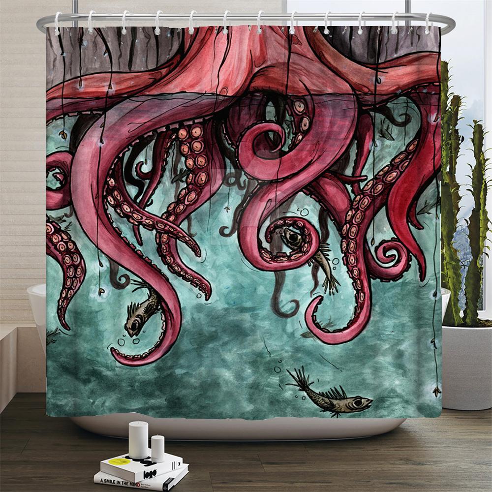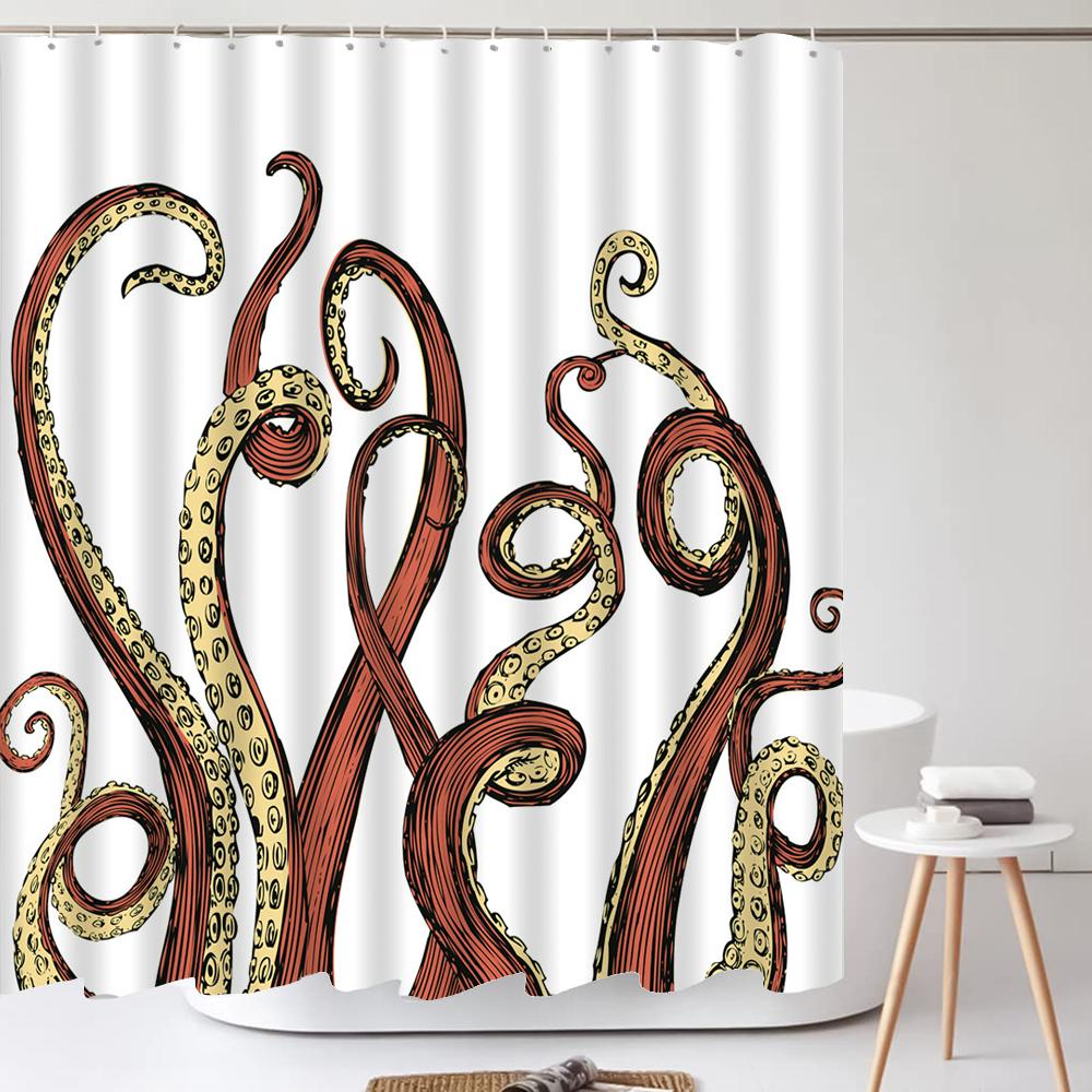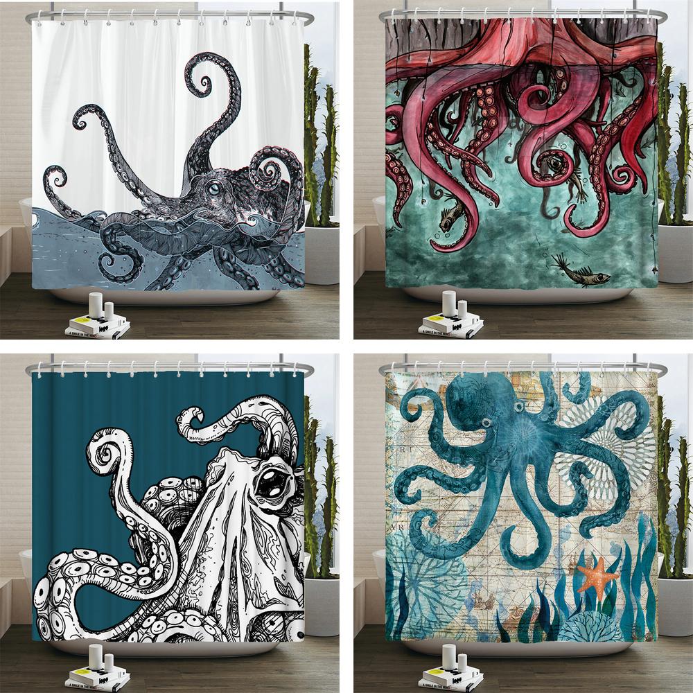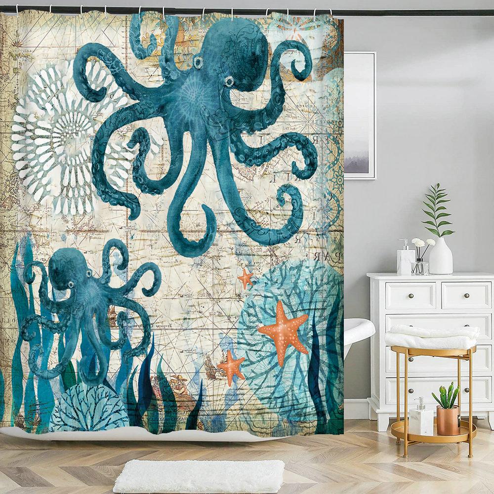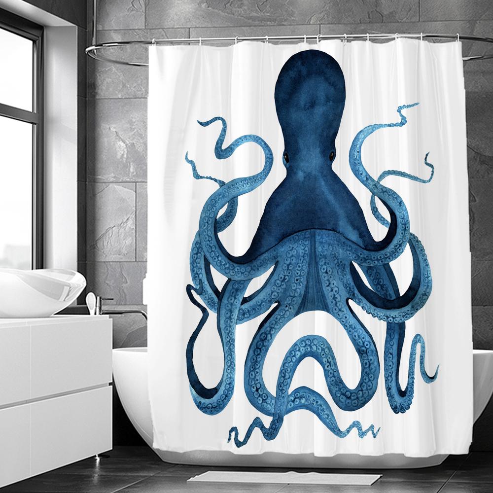 Octopus Seas Shower Curtains Bath Curtain 180*180cm Waterproof Bathroom Home Decor Washable Fabric Bathroom Screen With 12 Hooks