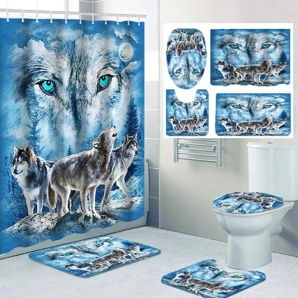 1/4 Шторы для душа с волчьими глазами, Декор для сиденья унитаза, Штора для душа с ковриком и крышкой унитаза, 12 крючков 70,8x70,8 дюйма — купить товар онлайн с бесплатной доставкой по всему миру!