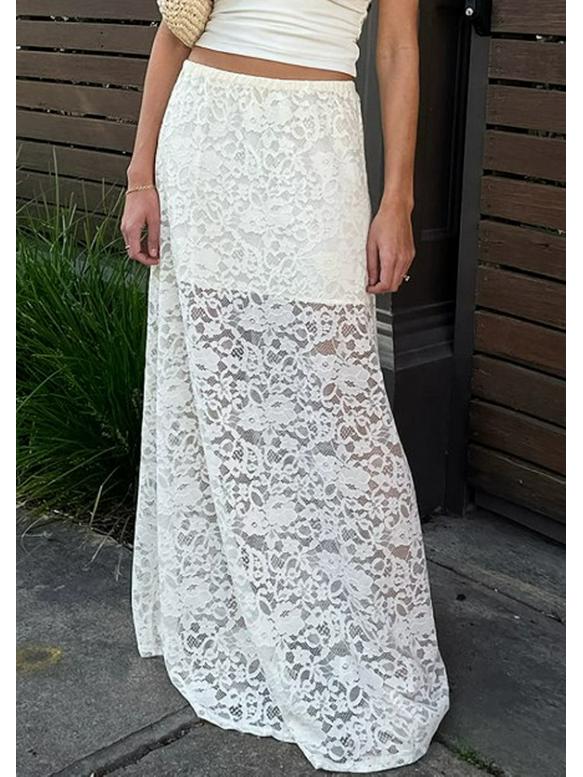 Женская белая кружевная юбка-миди А-силуэта - Весенний французский темперамент, Высокая талия, Дизайн с баской — купить товар онлайн с бесплатной доставкой по всему миру!