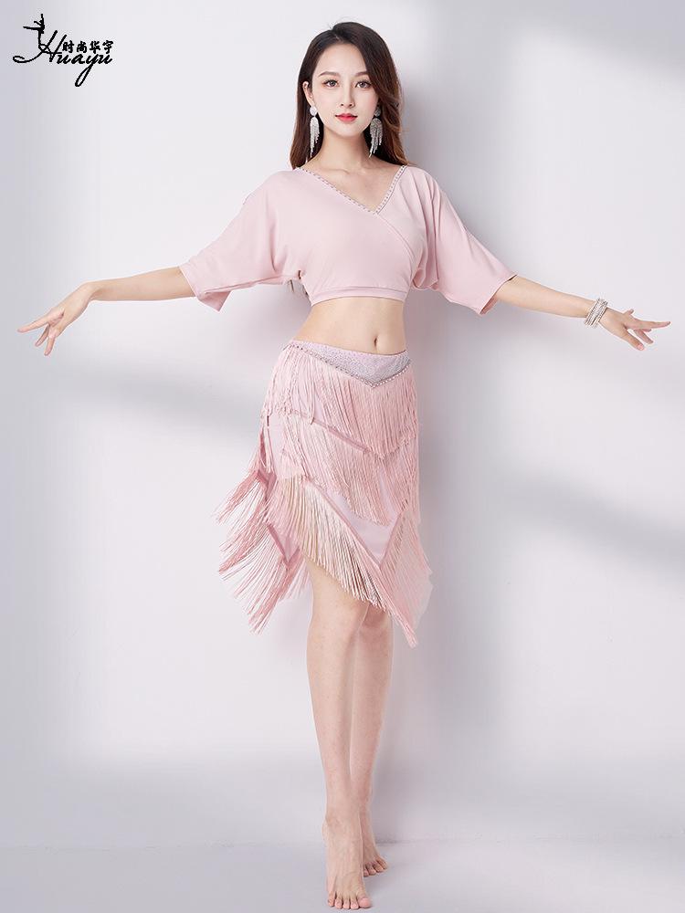 Летний комплект с V-образным вырезом и юбкой с кисточками для танца живота 2025 - Сексуальный восточный костюм для выступлений для женщин