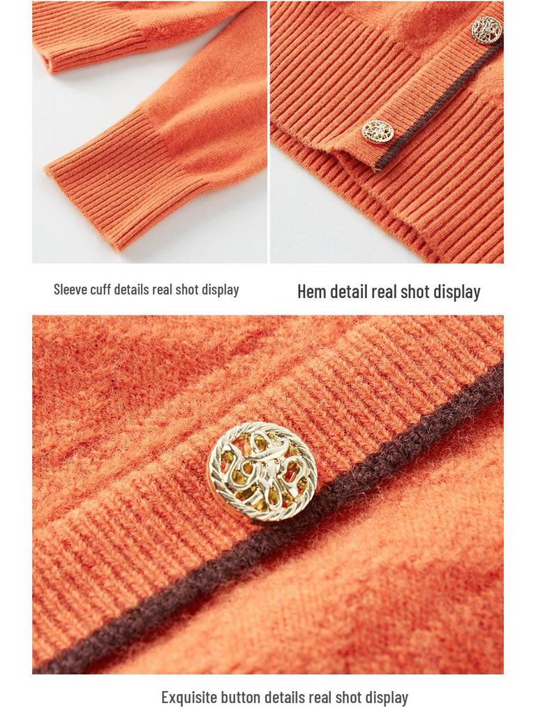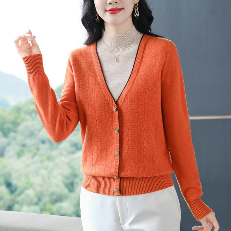 Женский приталенный шерстяной свитер с V-образным вырезом на осень 2025 года - Однотонный трикотажный пуловер