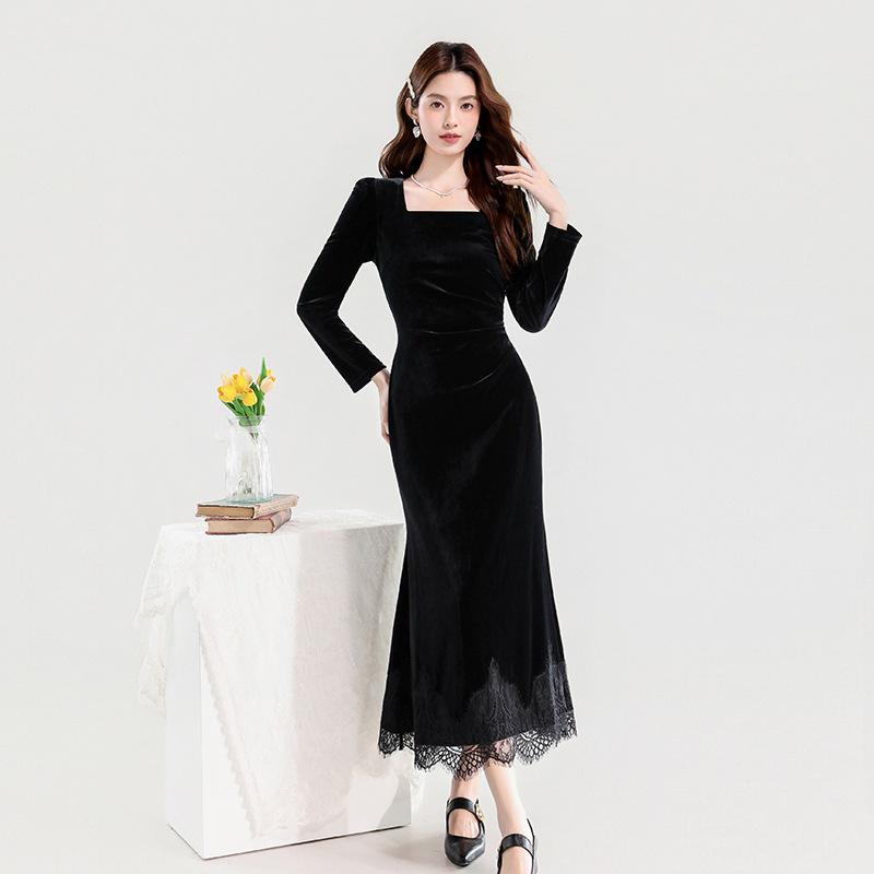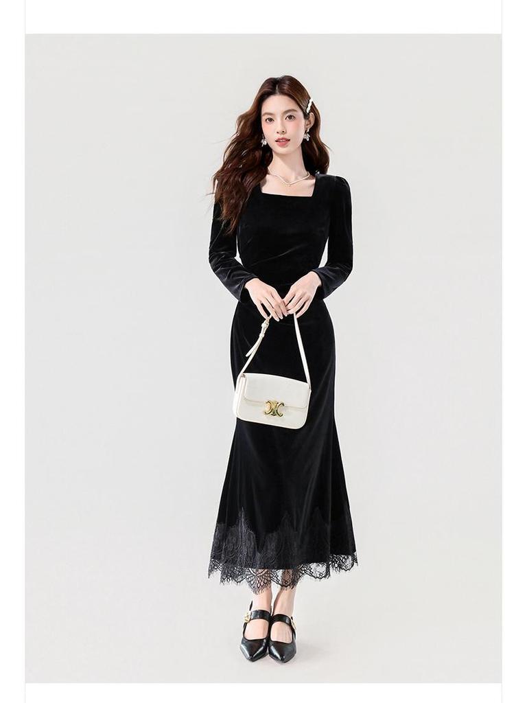 Пополните свой гардероб этим изысканным бархатным платьем, созданным, чтобы передать суть осенней элегантности.. Это платье, полностью изготовленное из роскошного бархата, дарит мягкое и комфортное ощущение на коже и излучает вневременное очарование.. Квадратный вырез добавляет современный штрих, дополняя изысканную кружевную отделку, которая деликатно подчеркивает его утонченный силуэт.. Идеальное для особых случаев или изысканного вечернего выхода, это платье сочетает в себе классический стиль с современным шиком.