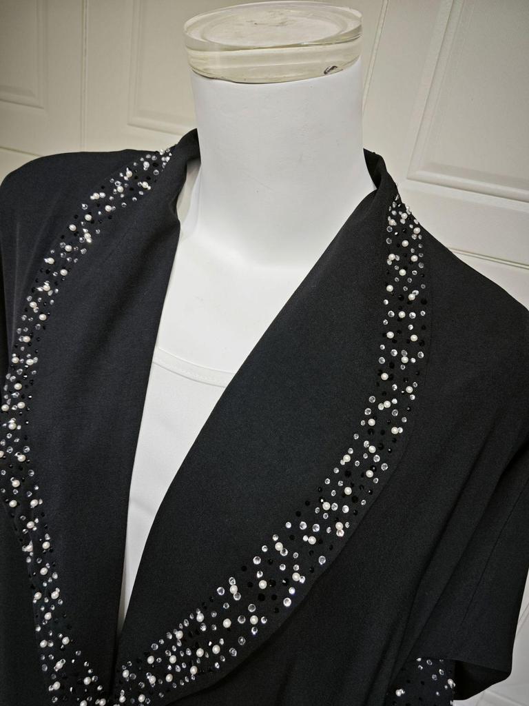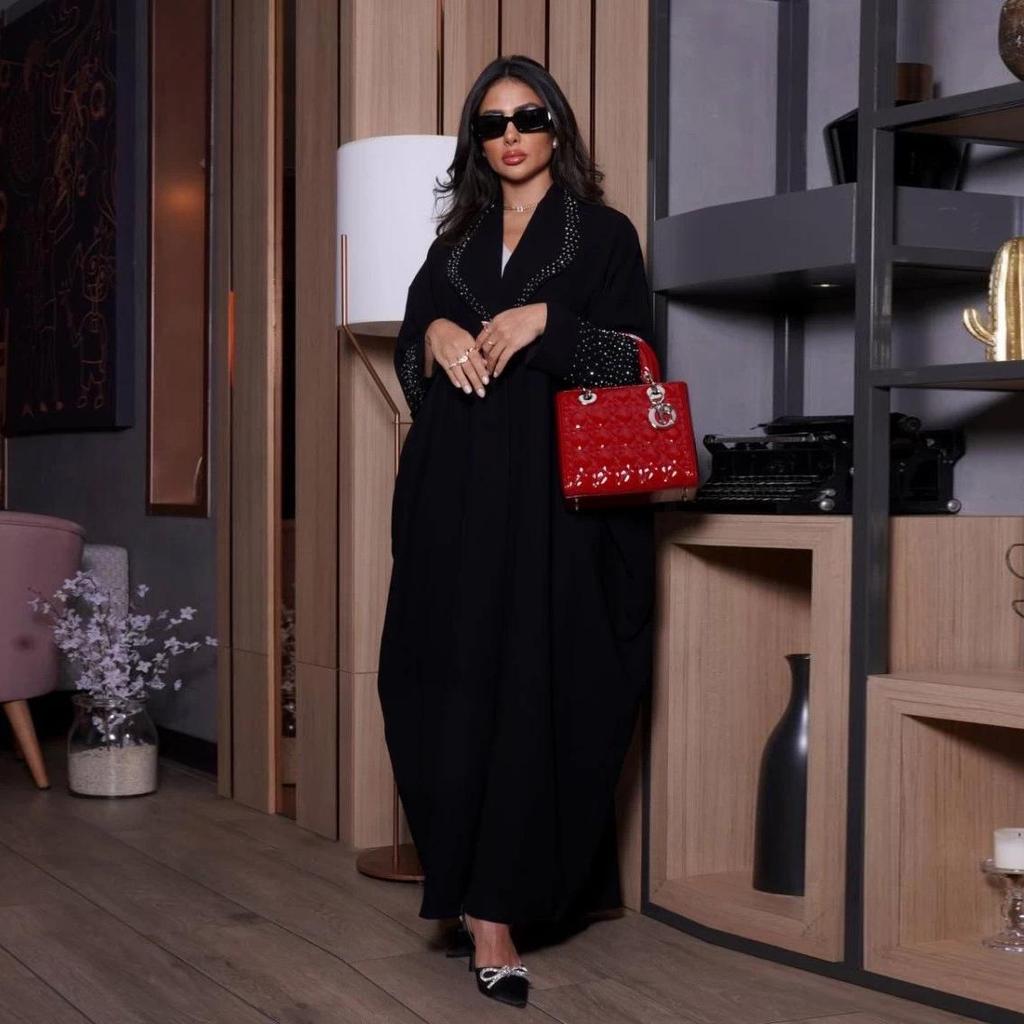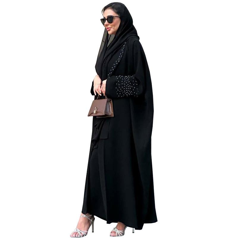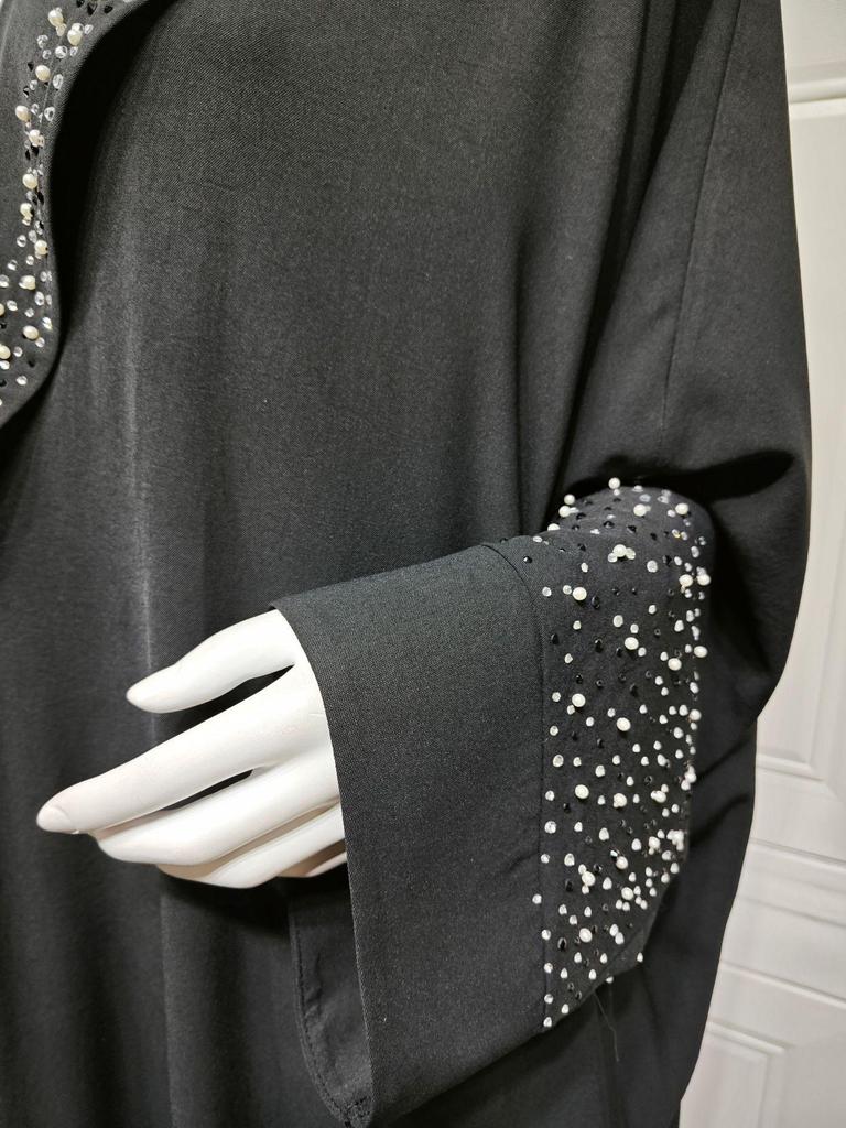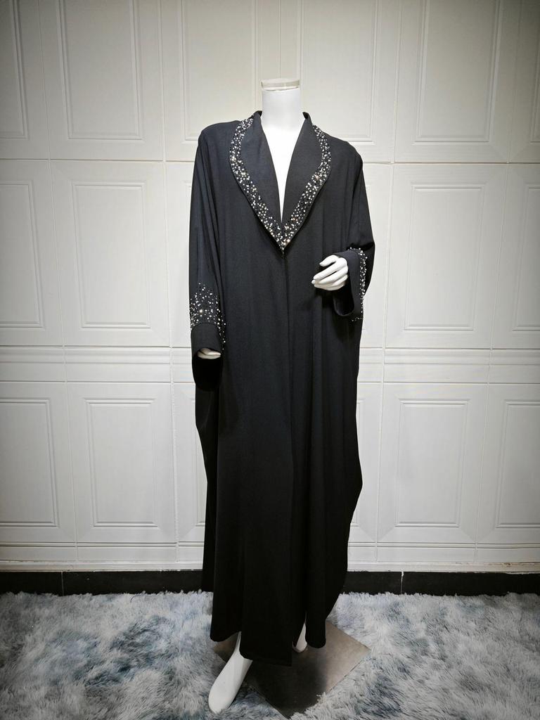 MQ206 Скромное черное арабское дубайское женское пальто с отделкой горячей фиксацией