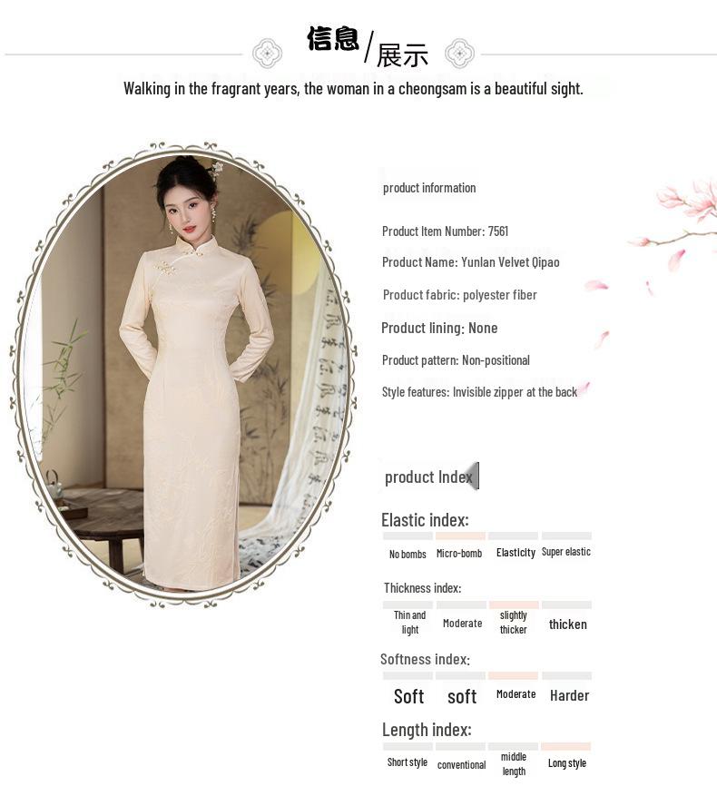 Окунитесь в элегантность и традиции с этим высококлассным приталенным ретро ципао, идеальным для молодых ценителей стиля, ищущих шикарное осенне-зимнее платье.. Изготовленное из качественного полиэстера, это ципао предлагает облегающий силуэт, который подчеркивает фигуру, обеспечивая при этом комфорт и долговечность.. Добавление меха юньланьского бархата усиливает его роскошный вид, обеспечивая мягкое, теплое прикосновение, идеальное для прохладного времени года.. Идеальное для особых случаев или стильного повседневного образа, это платье воплощает вневременную сущность классического дизайна с современной изысканностью.