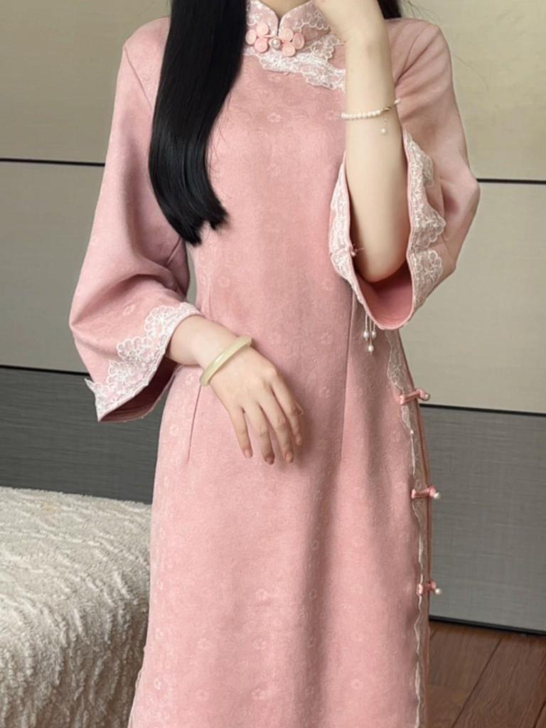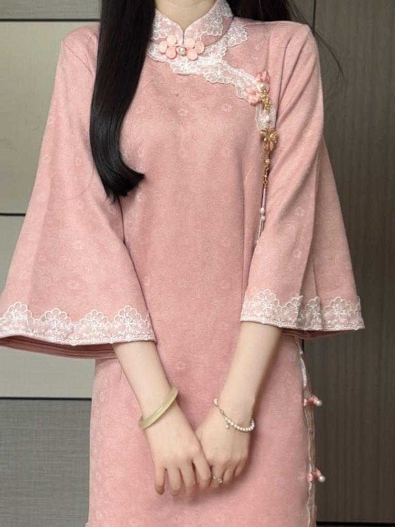 Пополните свой гардероб этим изысканным ципао, созданным для сезона осень/зима 2025.. Это изделие сочетает в себе ретро-шарм и современную элегантность, изготовлено из роскошного шенилла и спандекса для удобной и выигрышной посадки.. Дизайн отличается пленительными перевернутыми широкими рукавами и украшен богатым замшевым бархатом, предлагая как тепло, так и стиль.. Идеальное для любого особого случая, это ципао воплощает вневременную изысканность и современный шик.