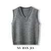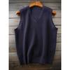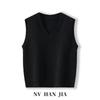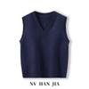 Брендовая скидка Жилет-топ без рукавов женский вязаный из чистой шерсти темно-синего цвета с V-образным вырезом – Универсальная осенне-зимняя верхняя одежда