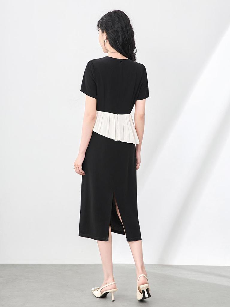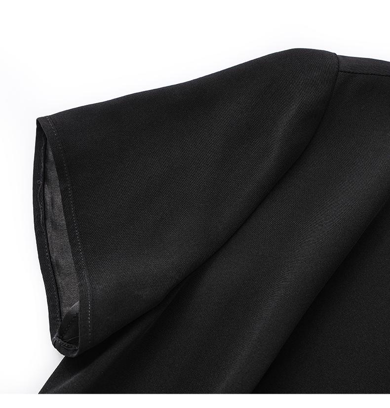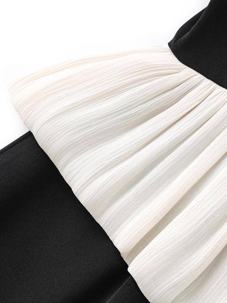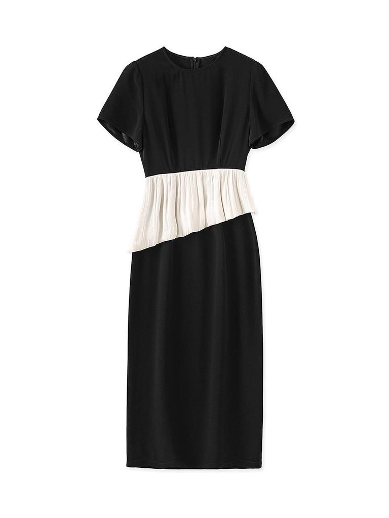 Women's Summer Satin Panel Ruffle Short Sleeve Dress - Bright Silk Waist-Gathering