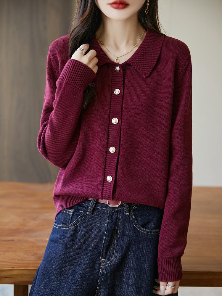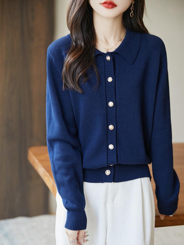 Женский кардиган из 100% хлопка, свободного кроя, в рубчик - отложной воротник, однобортная вязка для весны и осени
