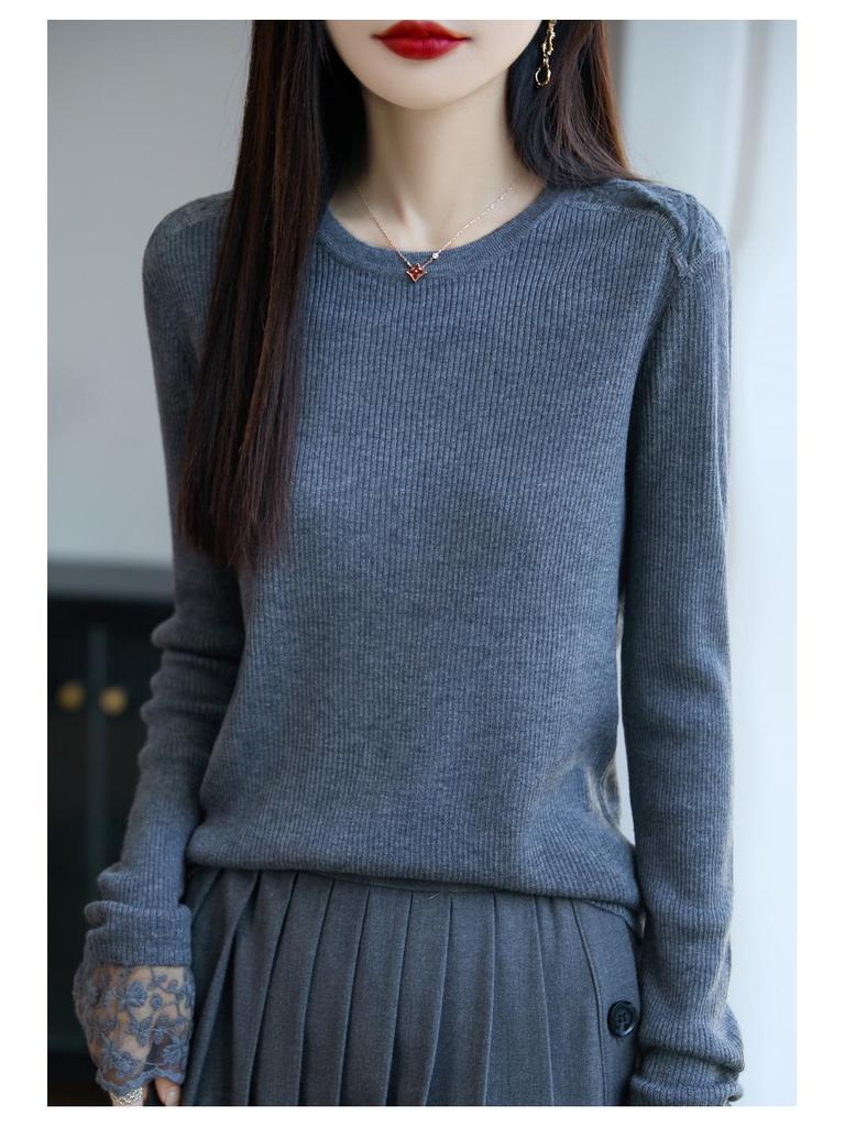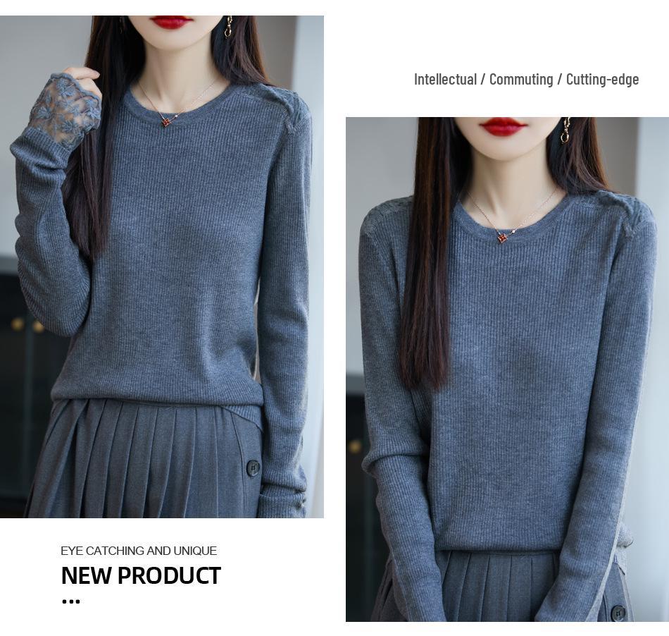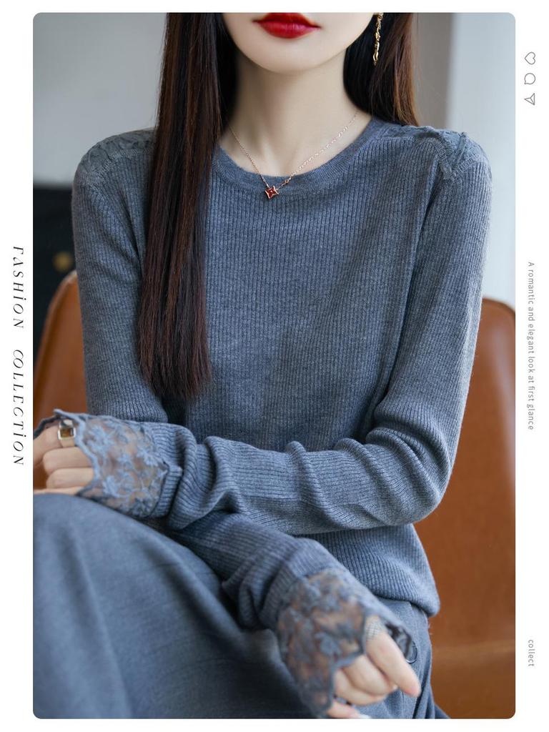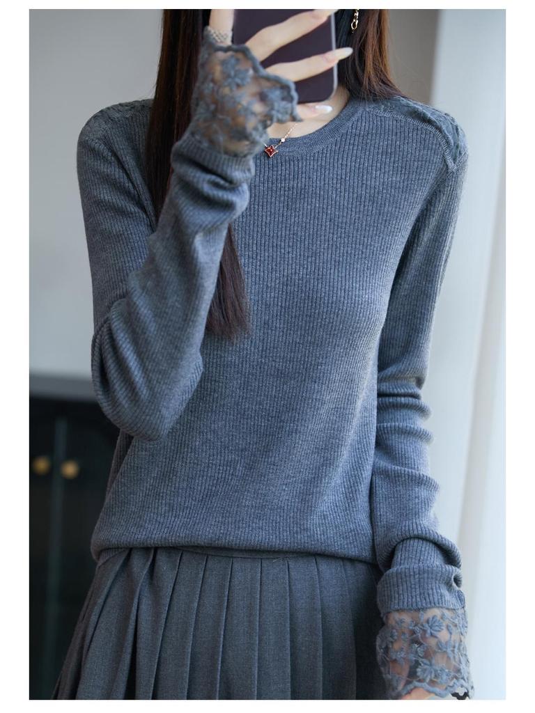 Черный кружевной лоскутный облегающий свитер: Женский вязаный топ с кружевной отделкой на осень/зиму