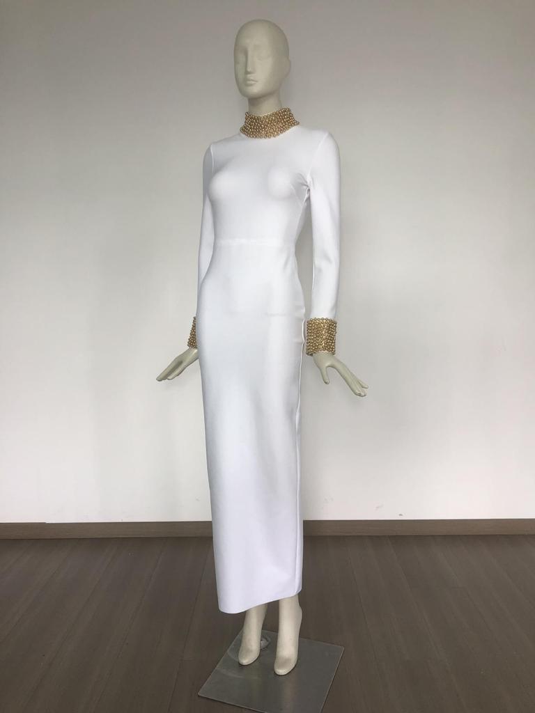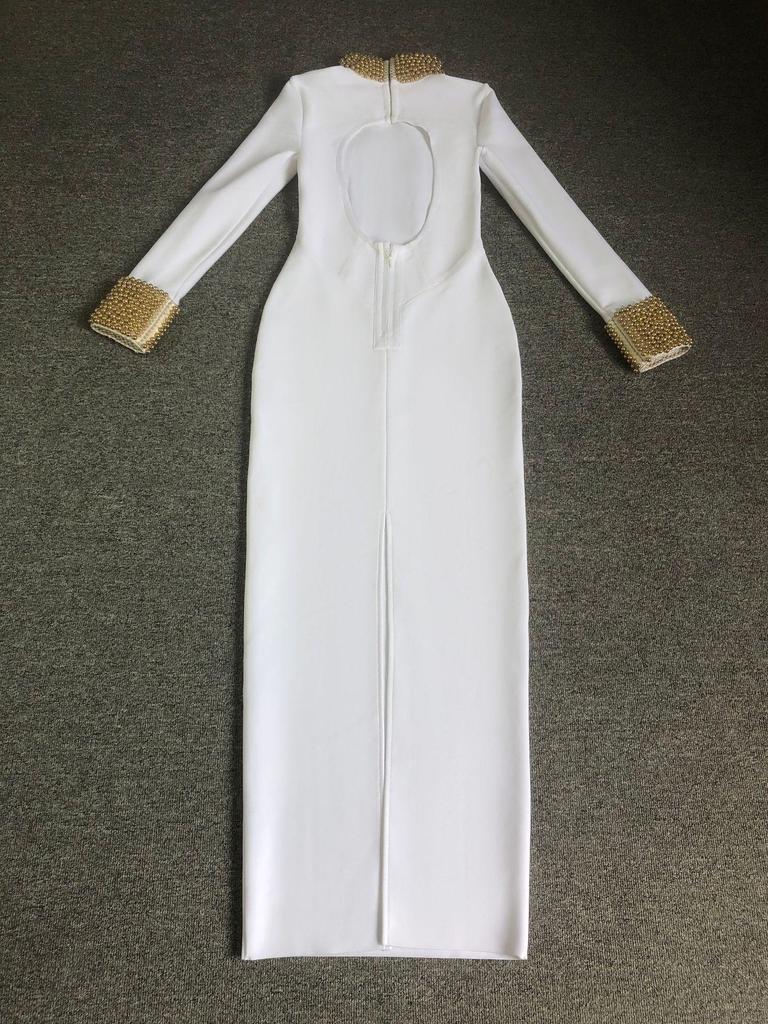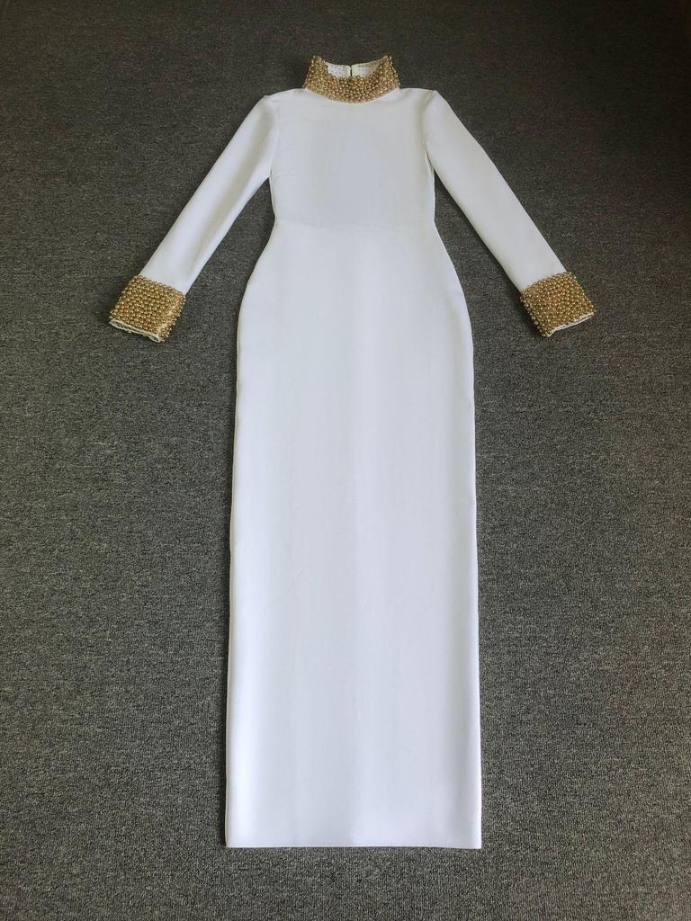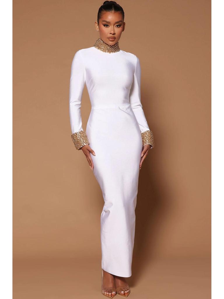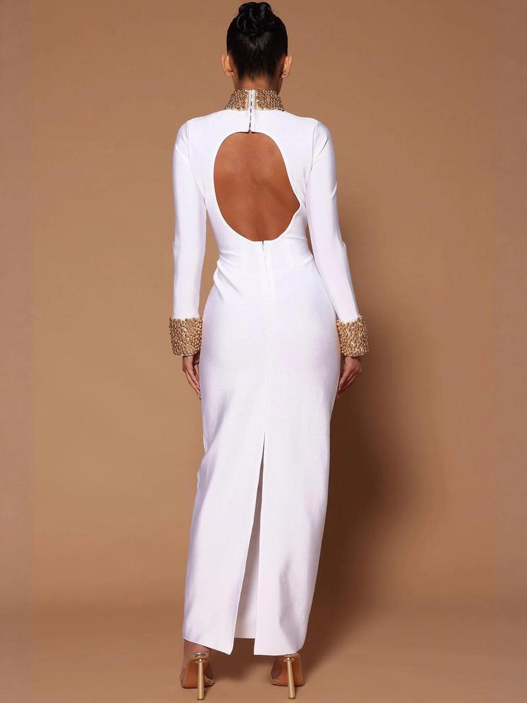 Платье бодикон без спины с воротником-стойкой из бисера в европейско-американском стиле - Ретро дизайн легкой роскоши