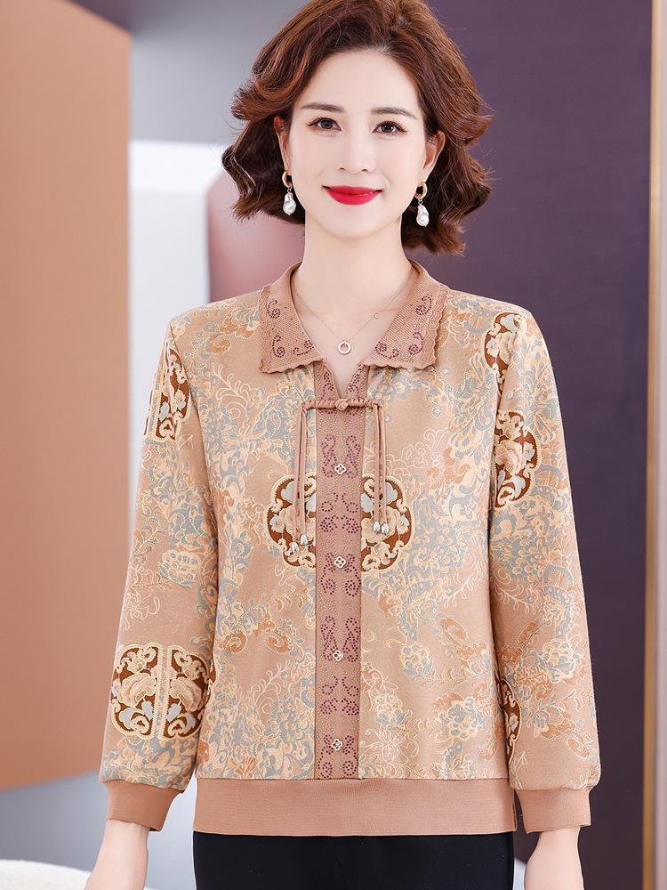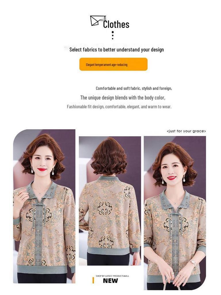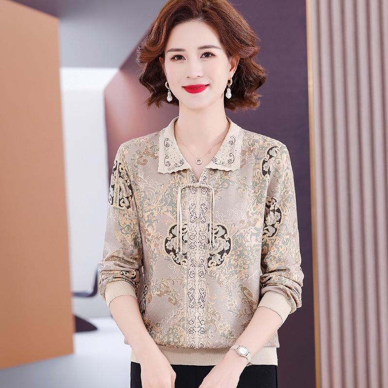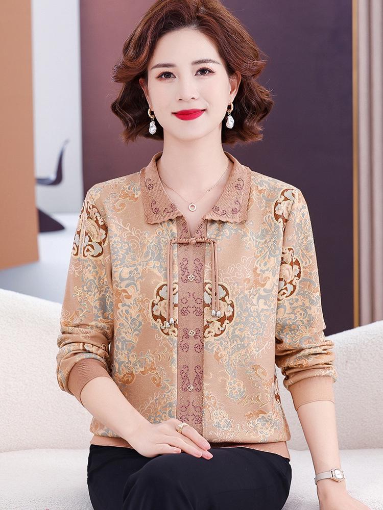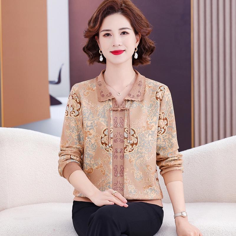 Мамин осенний трикотажный топ с длинным рукавом 2025 для женщин среднего и пожилого возраста