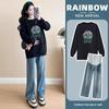 Мода для беременных Осень/Зима 2025 Свитшот с закрывающим живот и джинсы, комплект из двух предметов
