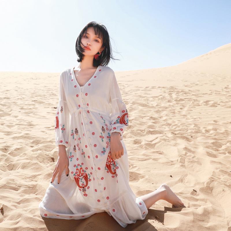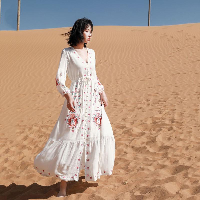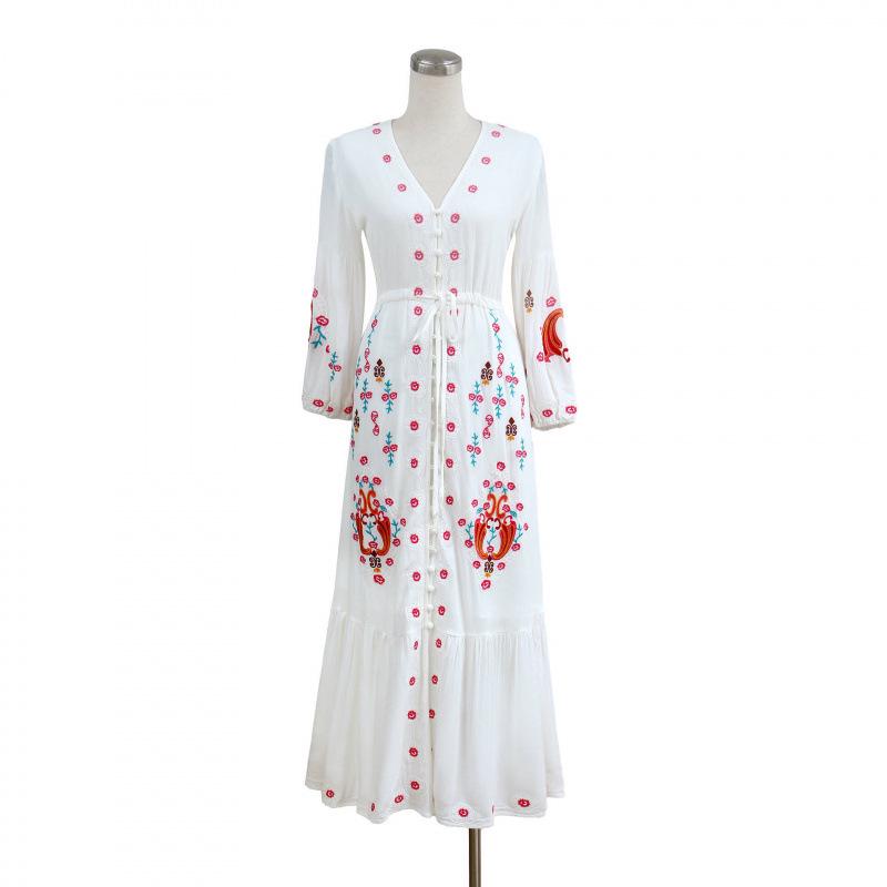 2025 Цветочное Винтажное Вышитое Платье с Кисточками Летнее Пляжное для Женщин