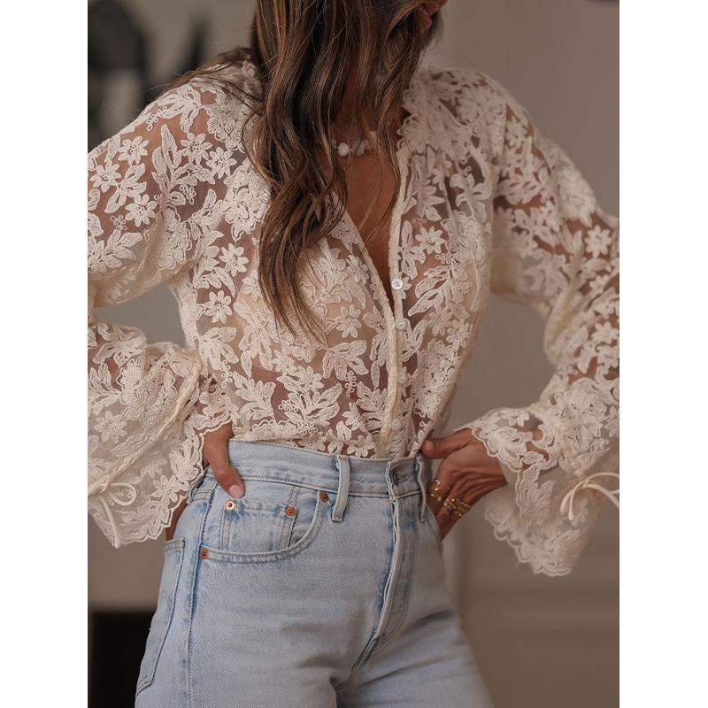 Женская повседневная корейская кружевная рубашка 2025 года - Новый ажурный дизайн — купить товар онлайн с бесплатной доставкой до всему миру!