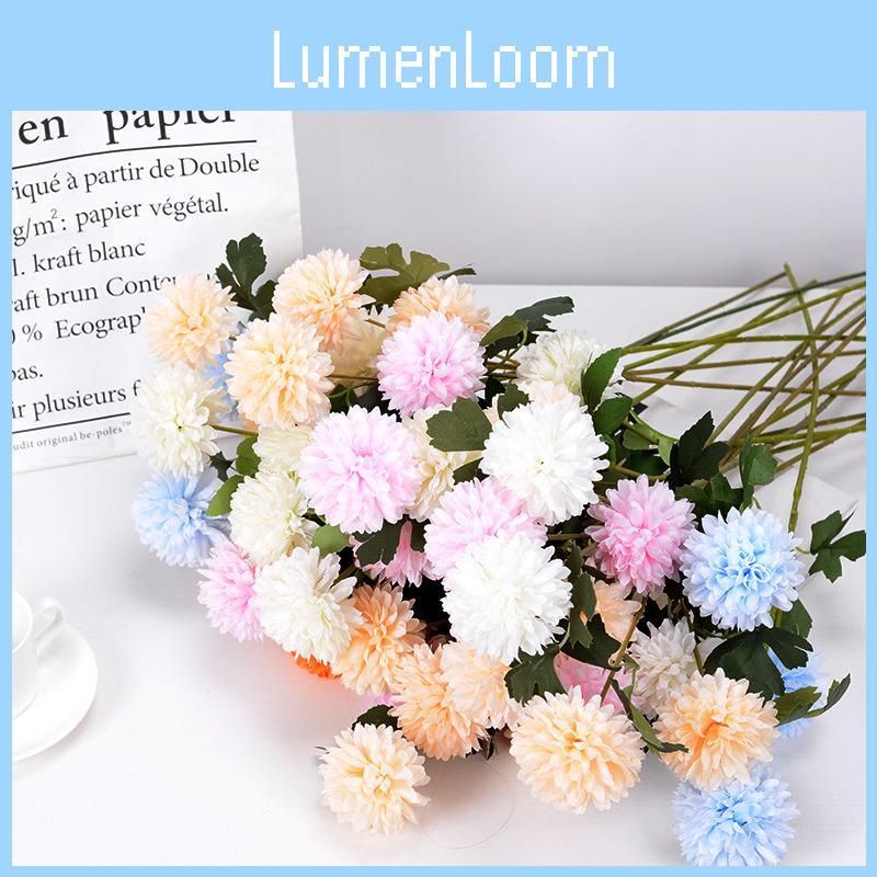 This 3-head chrysanthemum dandelion artificial flower features realistic silk material and is crafted through pouring process, measuring approximately 26 inches 60cm tall. It provides vibrant color options including burgundy, champagne, white, pink, blue, red, and orange. Ideal for wedding decorations, event venues, or home embellishments. Easy to maintain by wiping clean with a damp cloth.