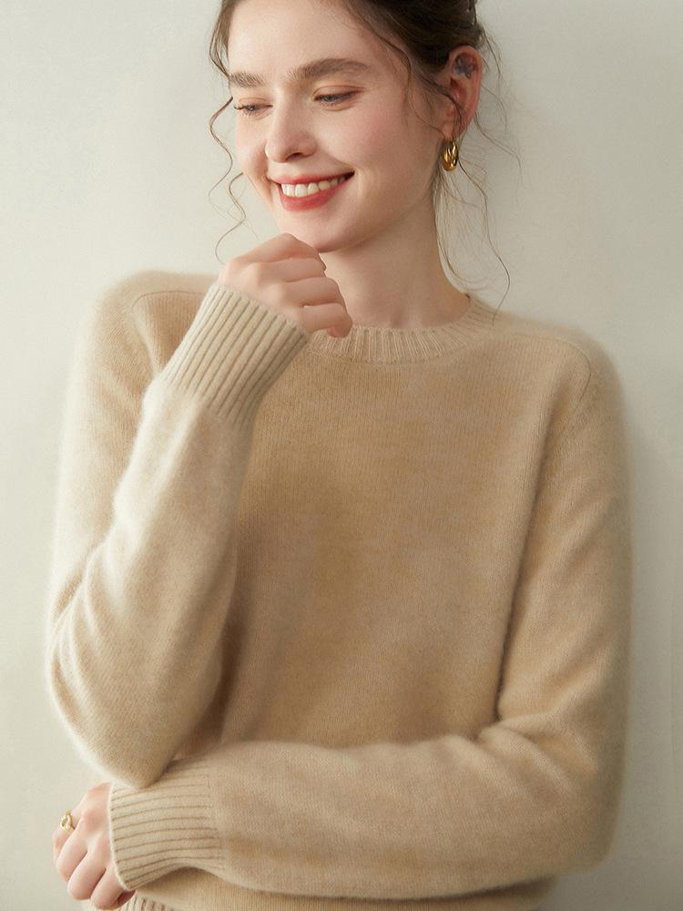Женский кашемировый свитер с круглым вырезом - Коллекция Осень/Зима 2025, Реглан, Утепленный, Однотонный, Свободный крой, Стройнящий вязаный базовый. — купить товар онлайн с бесплатной доставкой по всему миру!