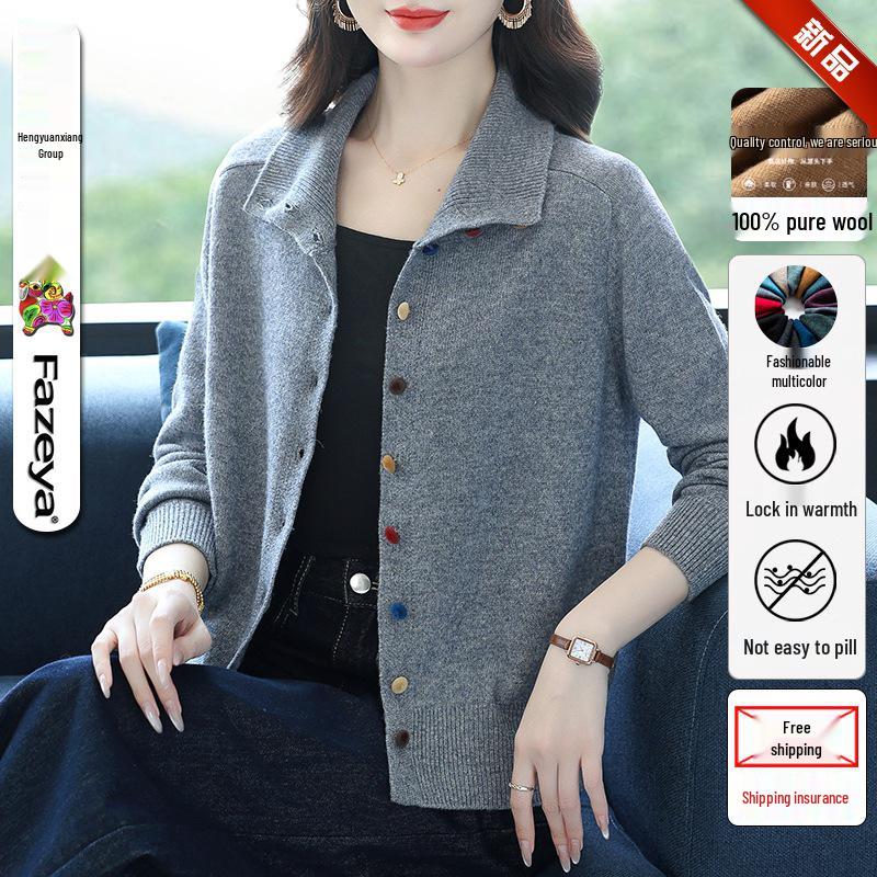 Женский вязаный кардиган из 100% чистой шерсти с отложным воротником - Осенняя мода, короткая куртка — купить товар онлайн с бесплатной доставкой по всему миру!