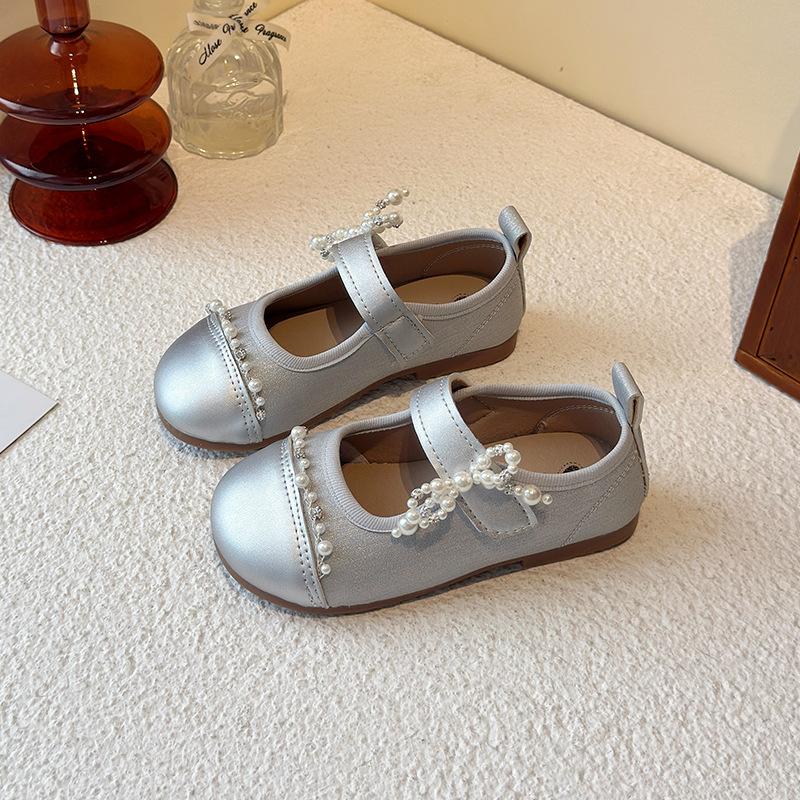 Туфли принцессы для девочек детская обувь 2025 новая весна маленькие кожаные туфли женские сокровище серебристые для девочки мягкая подошва одинарные туфли зарубежный стиль