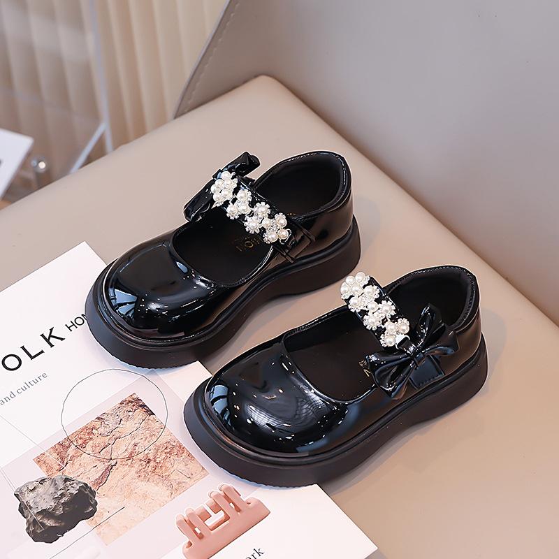 Девочки кожаные туфли черные 2025 осень новые одинарные туфли маленькие кожаные туфли британские для выступлений девочки мягкая подошва детские туфли принцессы
