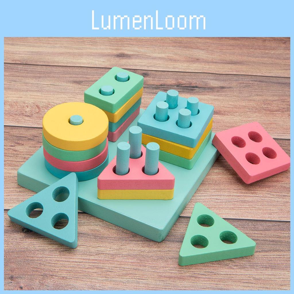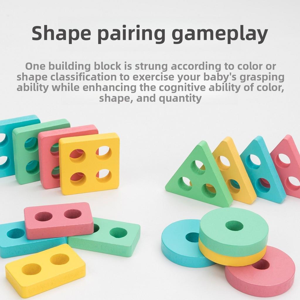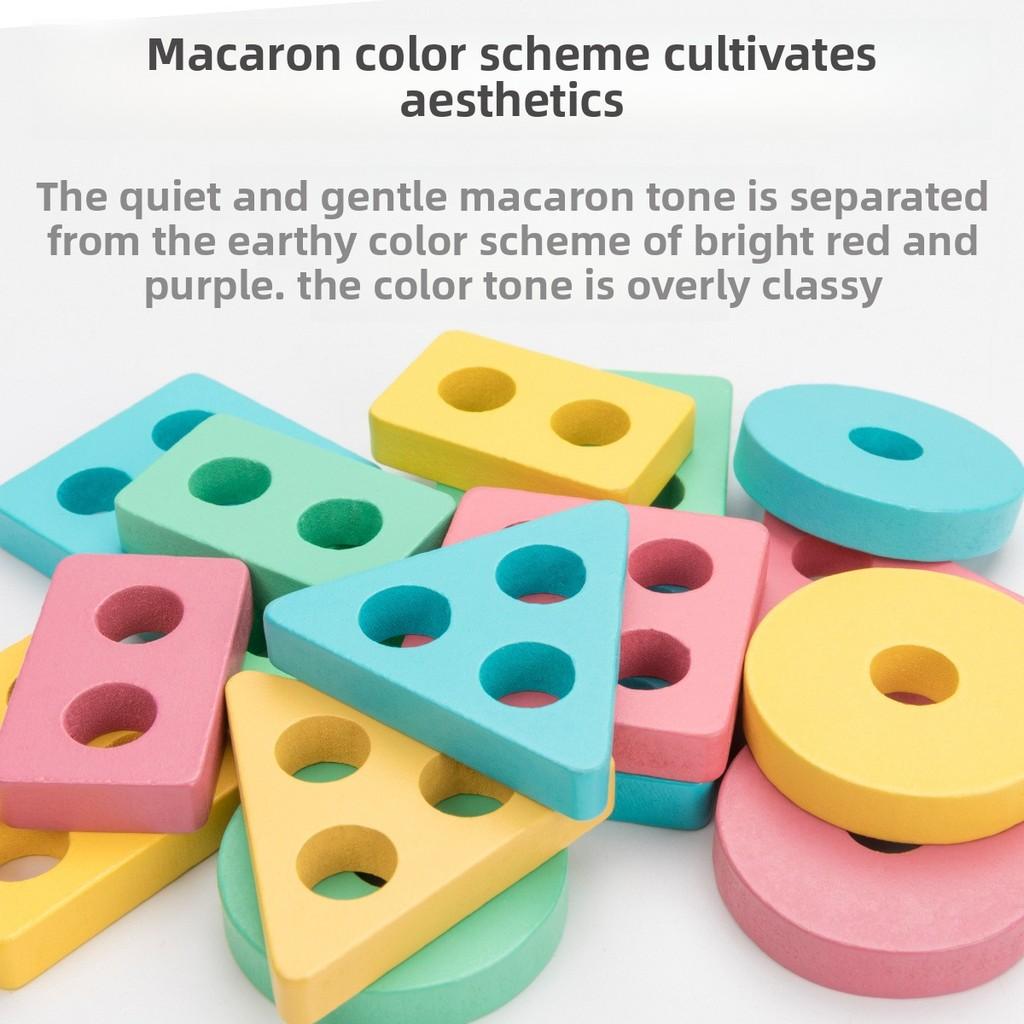Детские Строительные Деревянные Блоки Четыре Цвета Форма Макарон Игрушка для Сопоставления Развивающая