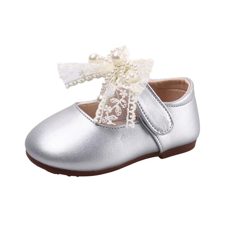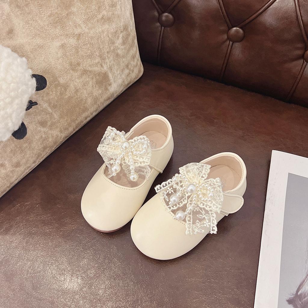 2025 осень новые кожаные туфли для девочек корейская версия детские туфли-лодочки с бантом и кружевом из жемчуга туфли принцессы для девочек одинарные туфли