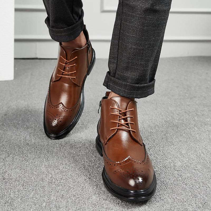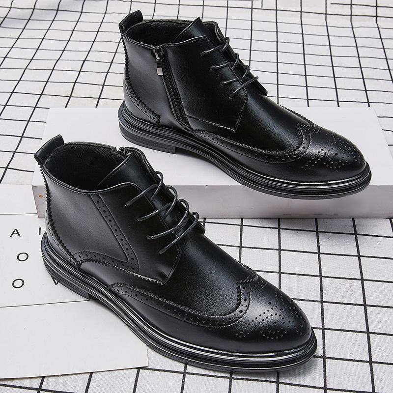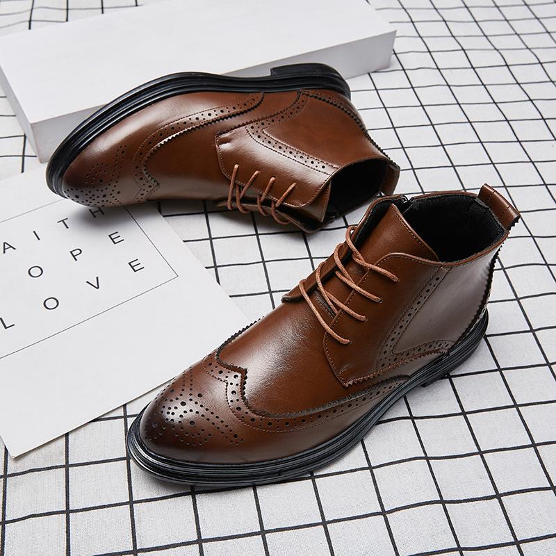 Мужские кожаные туфли с высоким верхом Ретро и высококачественные стили Модная вечеринка Уличный досуг Ботинки Осень и Зима