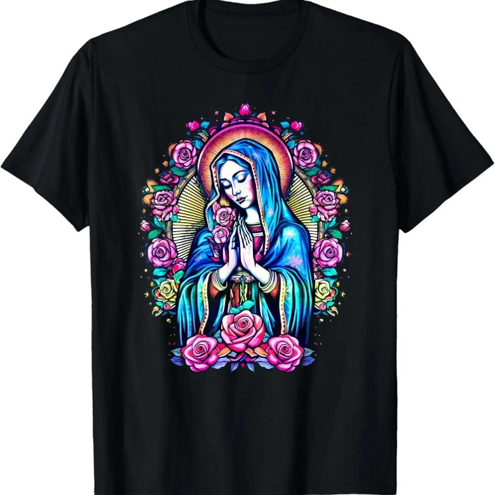 Молящаяся Дева Мария, розы, христианство, вера, изображение святого Футболка
