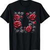 Красная Роза Розы Цветок Цветочный Дизайн Черная Монограмма Буква T Футболка