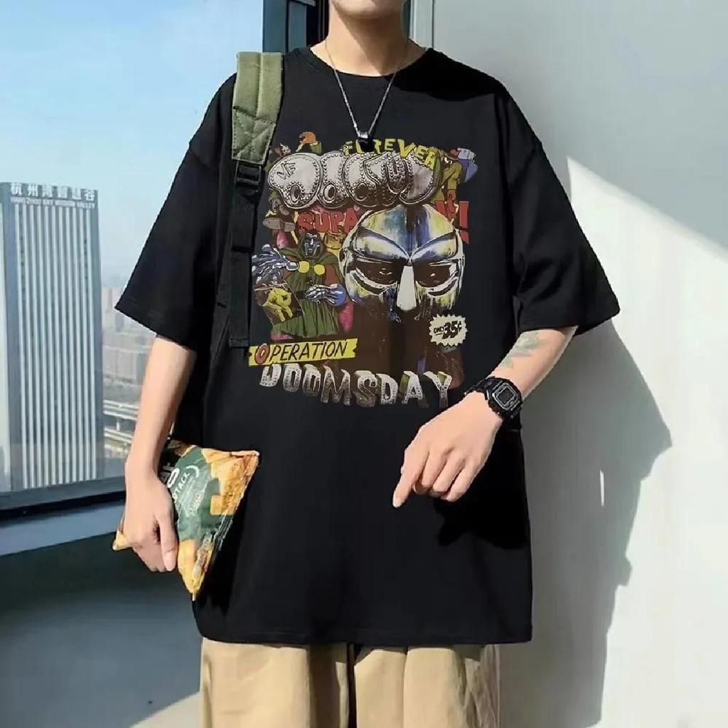 Лучший известный рэпер Mf Doom Madvillain Metal Face Print Футболка Мужская Женская мода Oversize Футболка Мужская хип-хоп Винтажная футболка