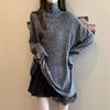Женский пуловер большого размера в стиле ретро с кружевом под горло и пайетками - осенне-зимний базовый слой до бедер